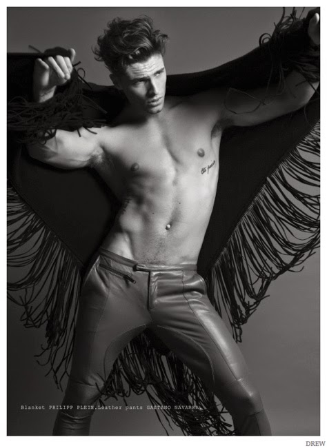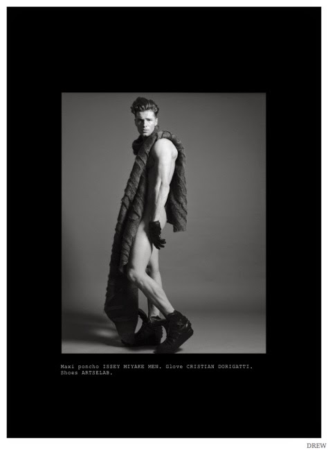 Photographed by Saverio Cardia for Drew magazine’s fourth issue, British model Edward Wilding (Sight Management) stars in a racy shoot. Captured in and out of his clothes, Edward wears fashions from Issey Miyake, Philipp Plein, Gaetano Navarra and more. / Styling by Federica Migliazza. Courtesy of – thefashionisto.com