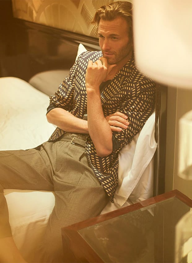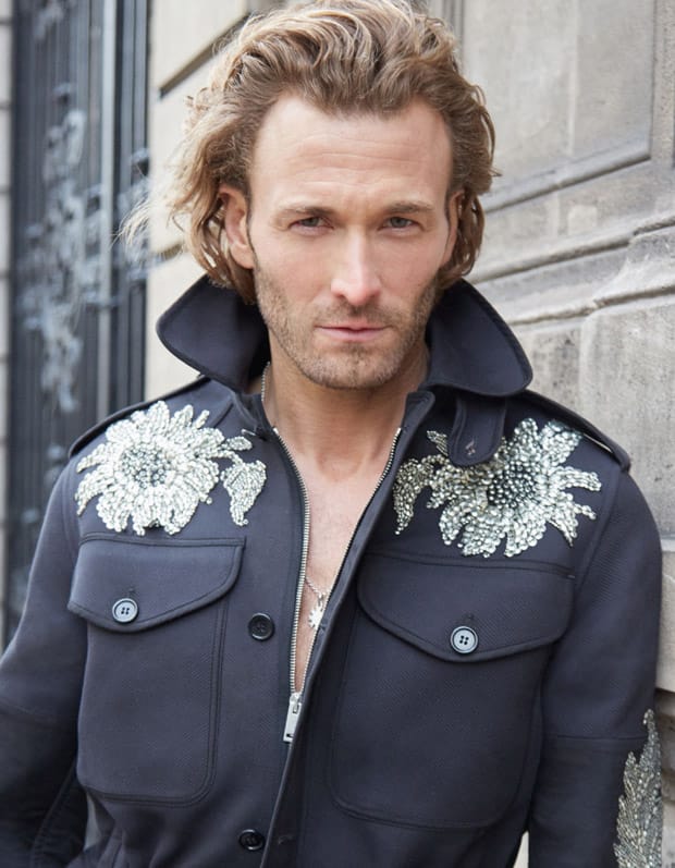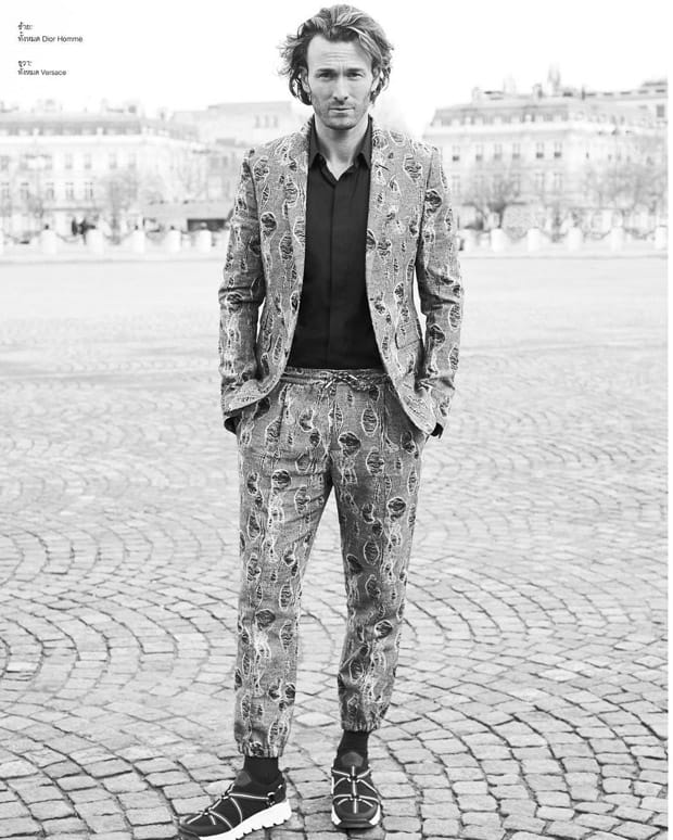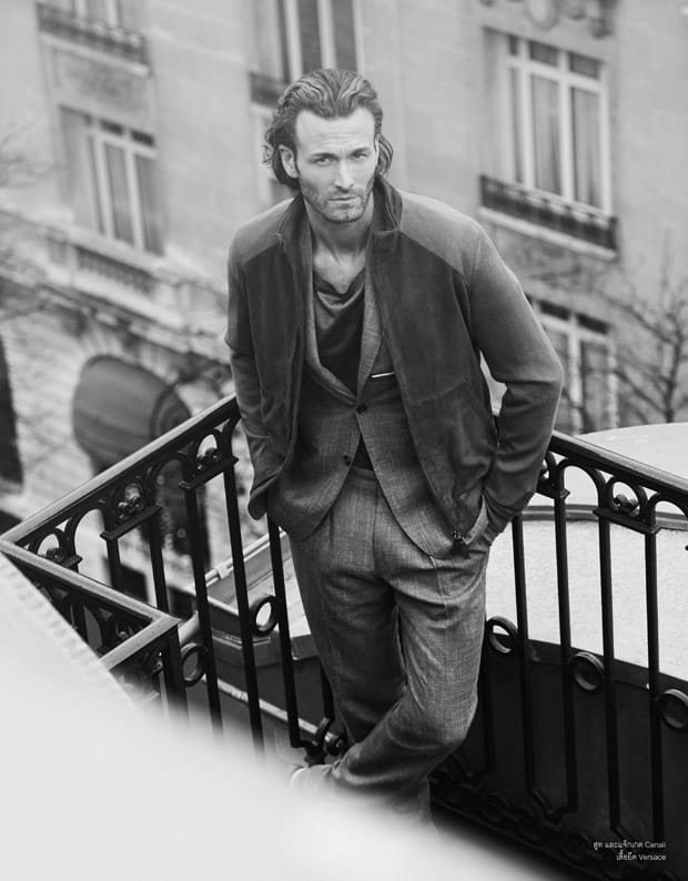 For An American in Paris story Brad was styled in selected looks from top brands such as Versace, Dior Homme, Dolce & Gabbana, Canali, Alexander McQueen, and Givenchy to name a few.” – Malemodelscene.net