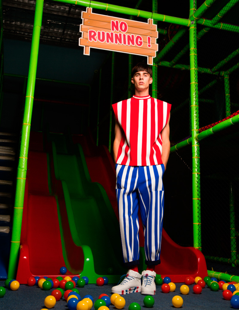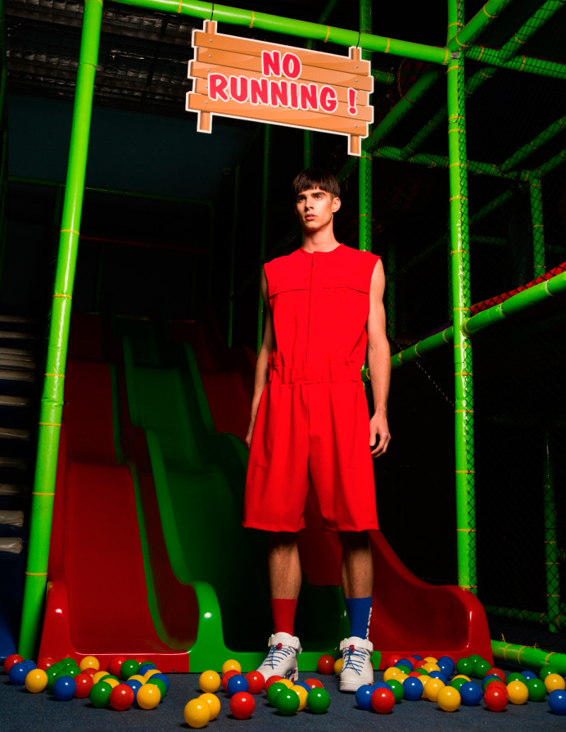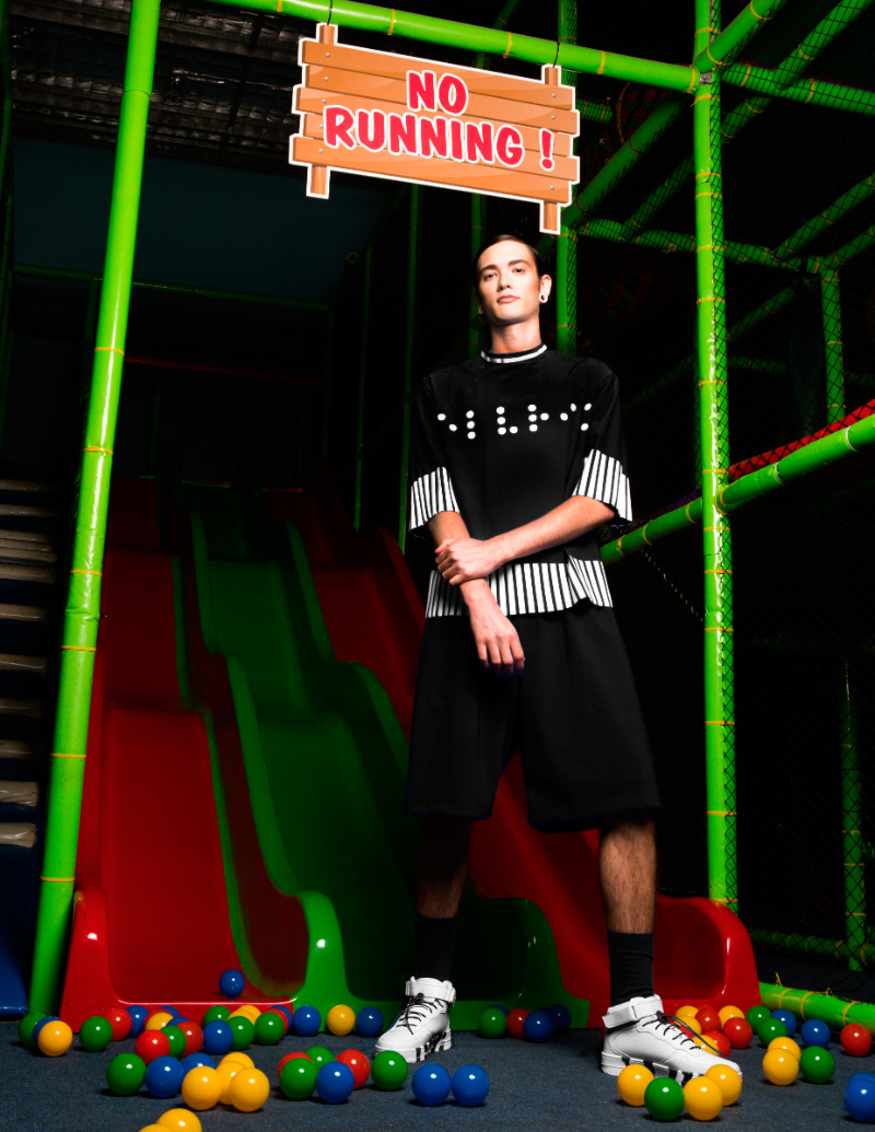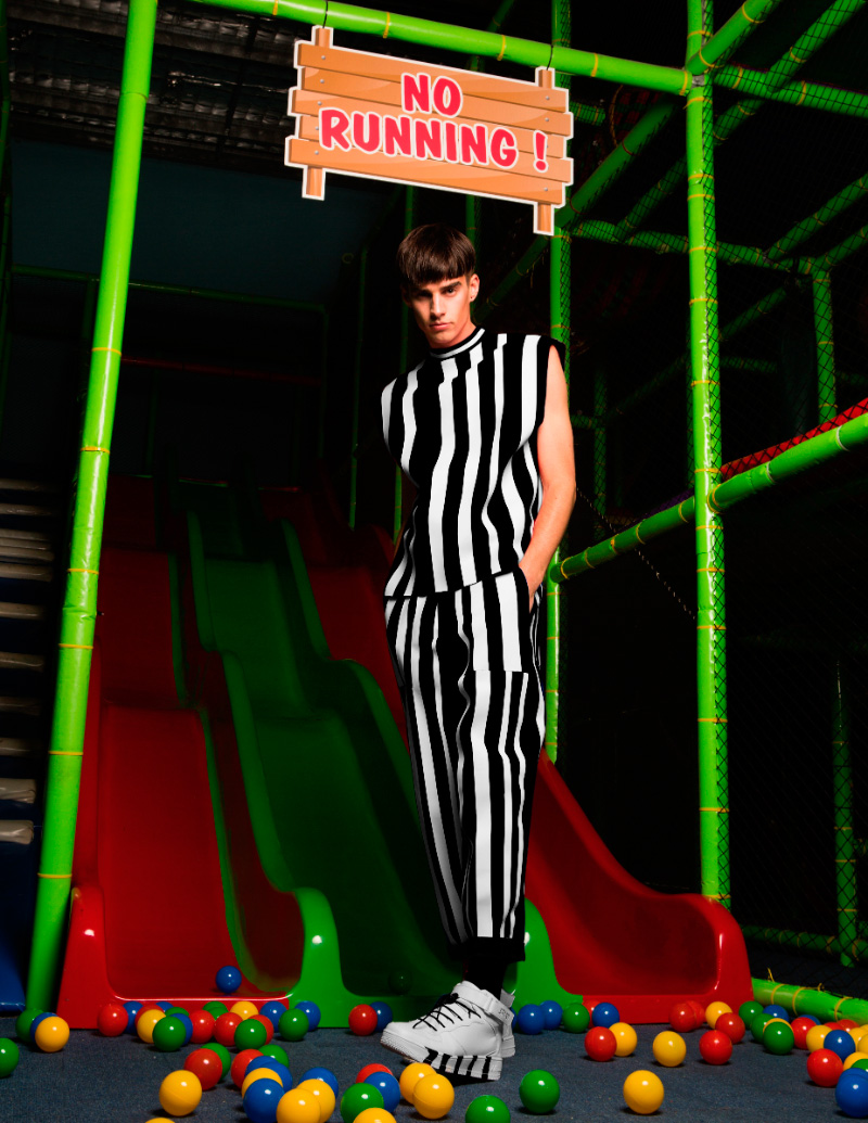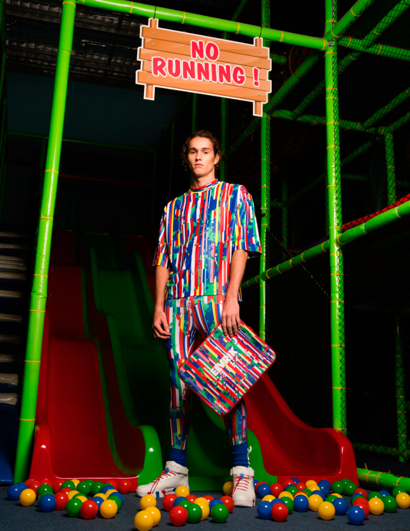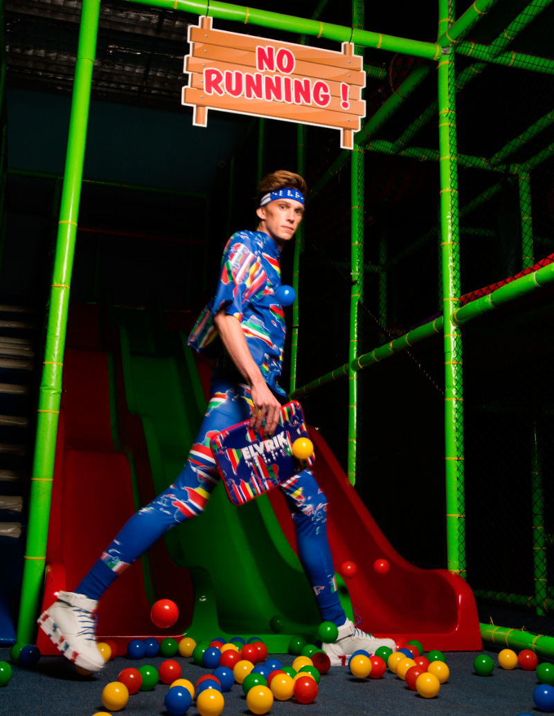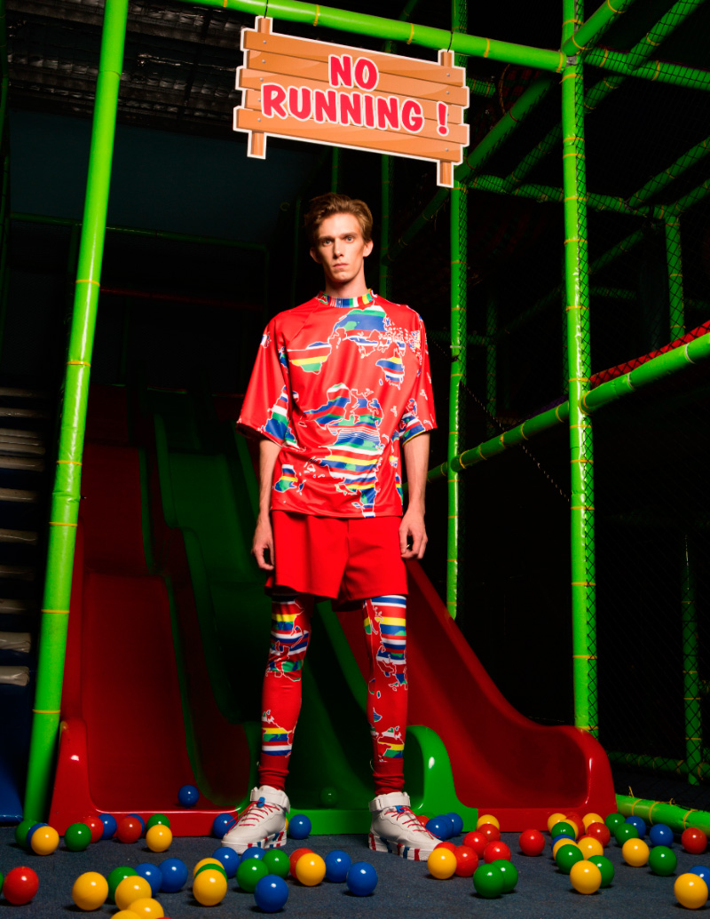 The collection drawing inspiration from his 13-month international exchange program visiting 14 countries across the world while based in Berlin The movie ‘Cool Runnings’ was another strong influence on Jordan’s designs perfect representation of 90s oversized sportswear that he finds key to his design aesthetic. The collection features innovative textile development, exploring intricate heat transfer techniques, print development and hi-tech fabric souring. A 3D tactile surface was created by using heat on 3D effect vinyl adhering to the fabric. Additionally, Jordan developed a 3D hi-tech seamless sports rib.