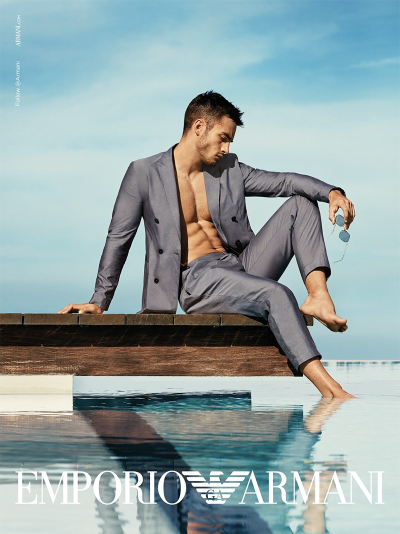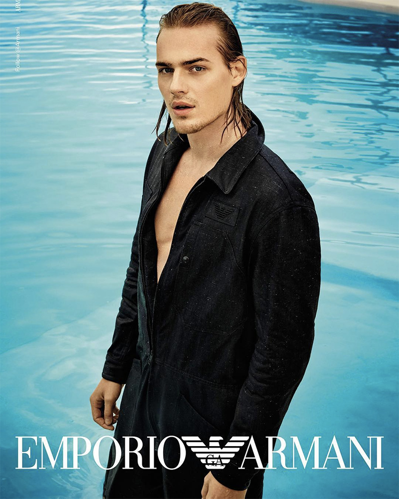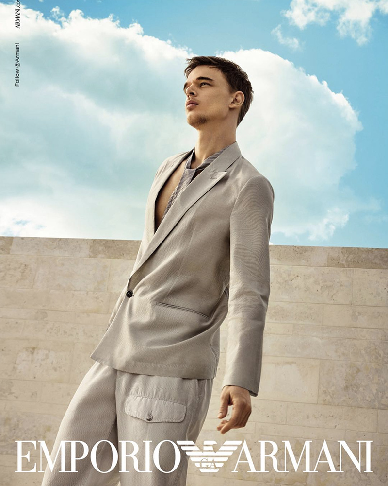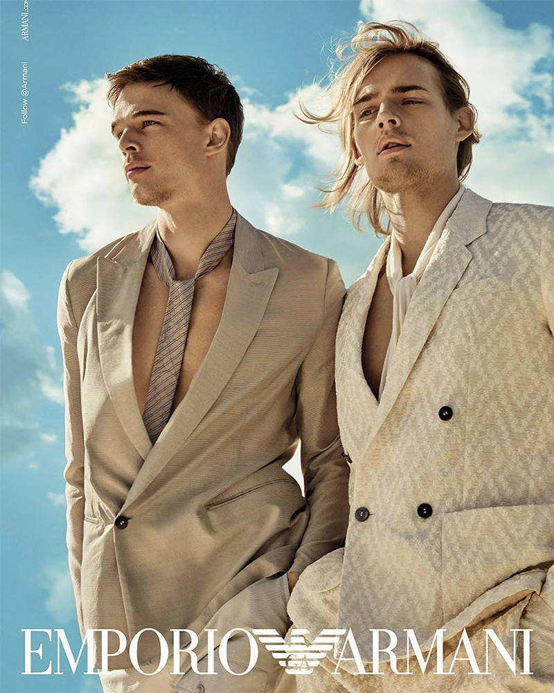 “Emporio Armani unveiled its Spring/Summer 2019 campaign featuring Aleksander Rusic, Andre Bona, and Ton Heukels shot by Enrique Badulescu.” – FY Magazine.es