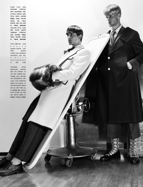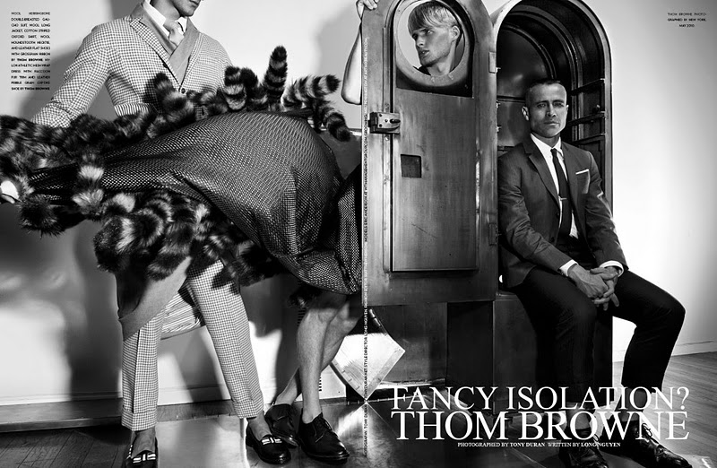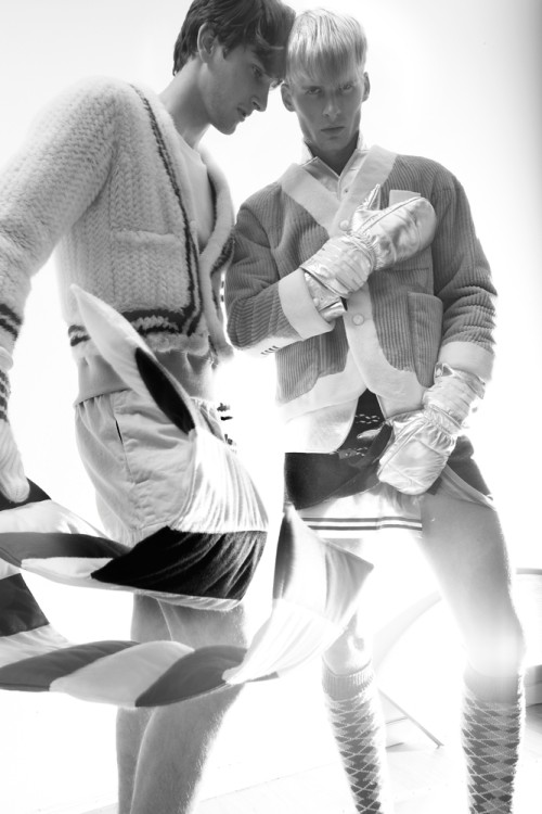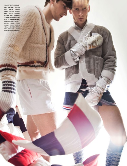 Photographer Tony Duran shot this Thom Browne special for the new Trust Issue no. 111 of Flaunt magazine. ‘Fancy Isolation?’ features models Eric Anderson and Erik Sims dressed in Thom Browne under the style direction of Long Nguyen and fashion editor Matthew Henson. – Courtesy of Homotography.blogspot.com