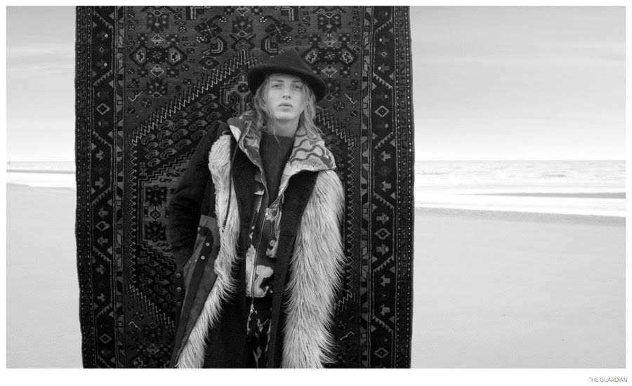 Fall Dream-Photographed by Joanna van Mulder, Swedish model Erik Andersson stars in a new fashion editorial for The Guardian. Taking to the beach for a dreamy fall outing styled by Helen Seamons, Erik models fashions with an artsy twist that includes patchwork prints and intricate patterns. / Grooming by Gow Tanaka using Aveda. Courtesy of – thefashionisto.com