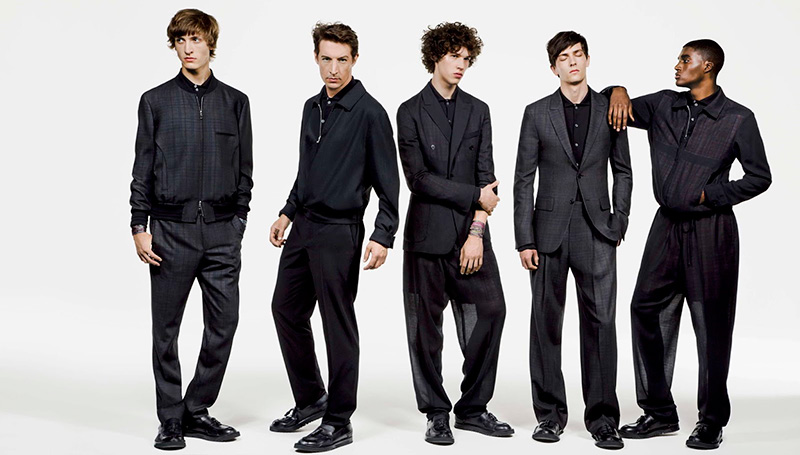 “British actor Benn Northover and models Arthur Chrkszcz, Baastian Ninamber, Daryl Jones, Fabian Frunke, Karl Kolbitze and Tim Dibble front the Spring/Summer 2016 campaign of Ermenegildo Zegna, shot by Inez & Vinoodh and styled by Joe McKenna.” – FY Magazine.es