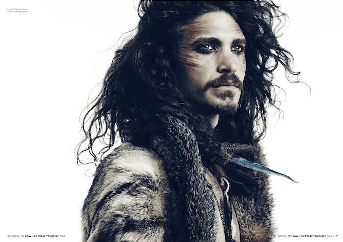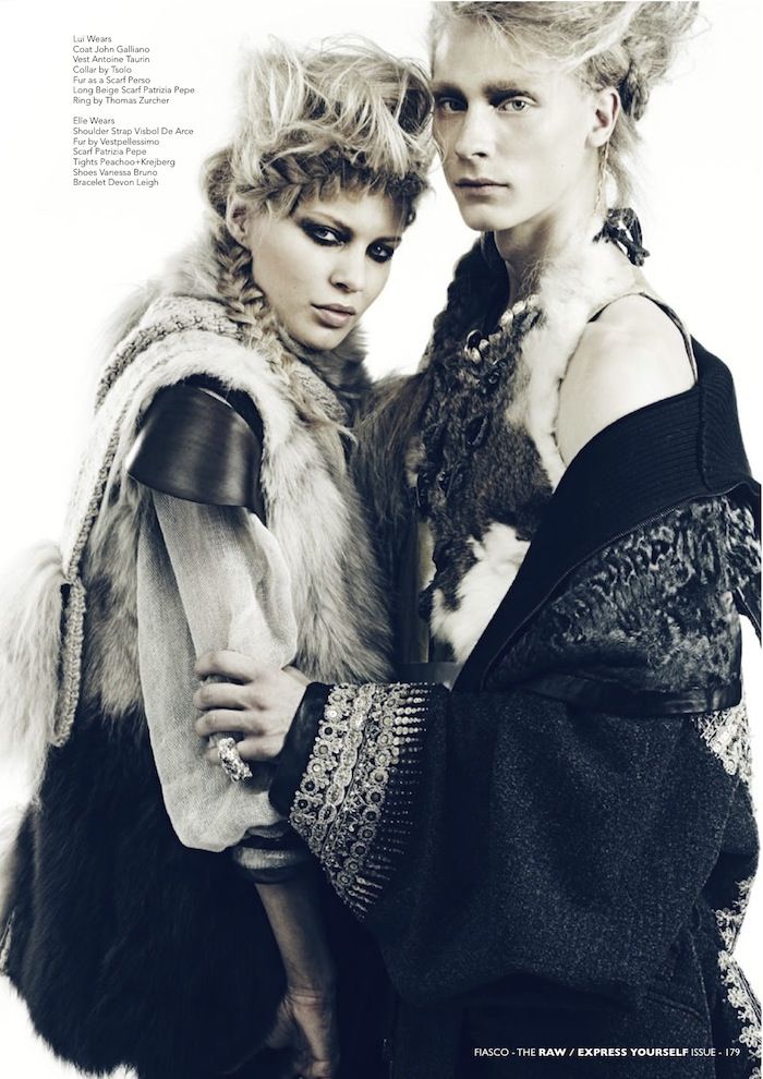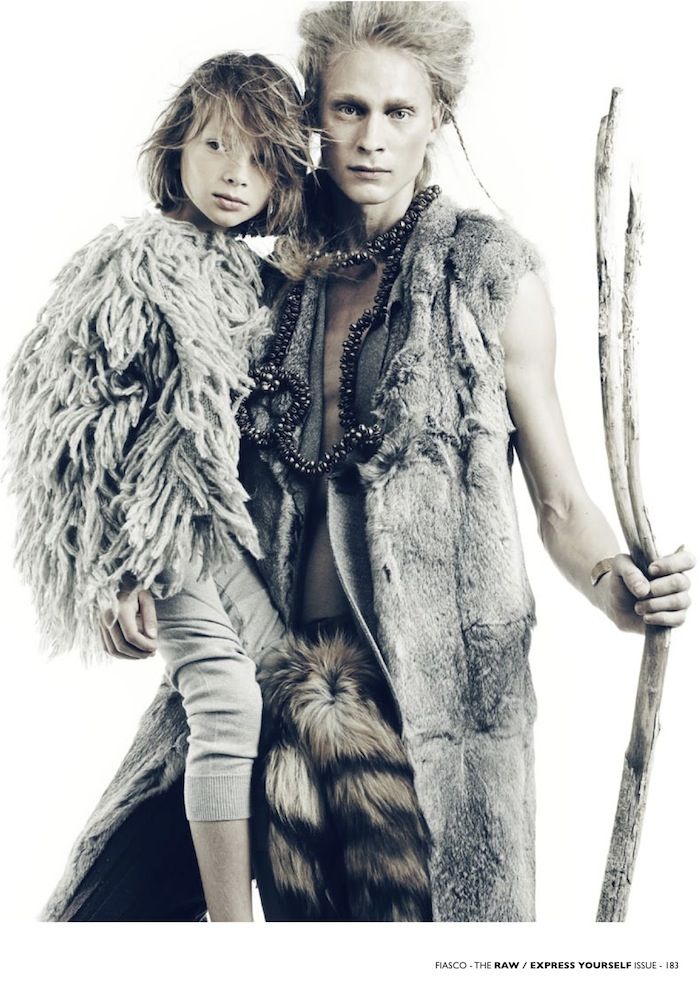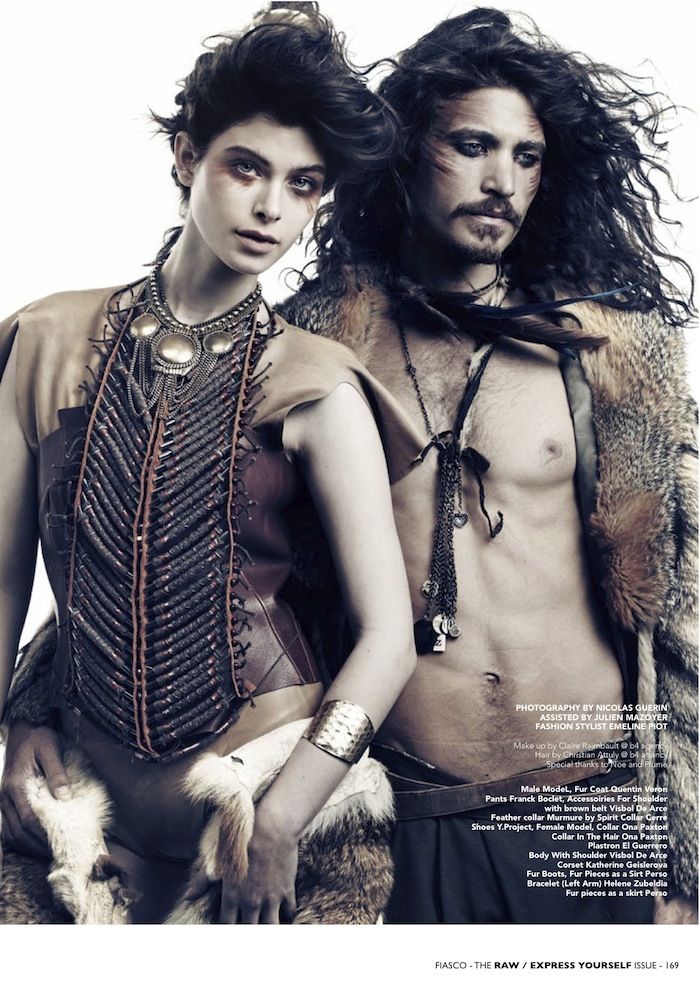Into the Wild–Nicolas Guerin photographs Eugeniy Sauchanka and Adam Wallace for the latest issue of Fiasco. Channeling a primal nature, the pair are styled by Emeline Piot in furs and animal claws for the nomadic-inspired shoot. Courtesy of – hommemodel.blogspot.com