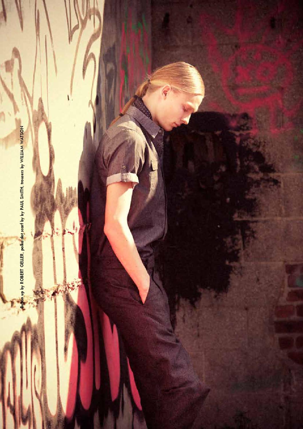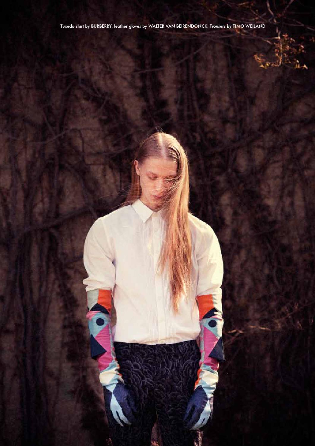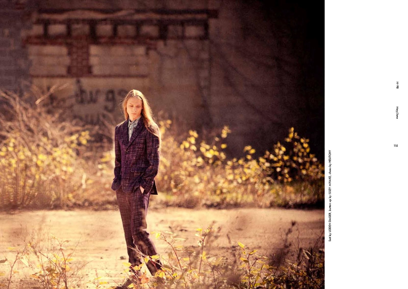Photographer Kristiina Wilson and stylist Michelle Carimpong collaborate again to capture and style Russian model Eugeniy Savchenko for this sartorial shoot for Brazilian online magazine U+Mag. Bright patterns are contrasted against crisp white shirts while a textured suit from Marlon Gobel adds dimension. Margina Dennis provided the grooming for the shoot. Courtesy of – hommemodel.blogspot.com