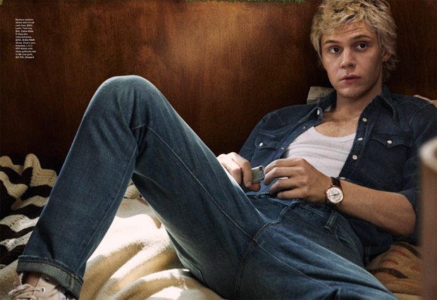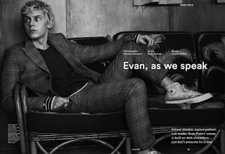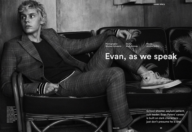 “American Horror Story star Evan Peters takes the cover story of Icon Magazine‘s Fall 2018 edition captured by fashion photographer Michael Schwartz at Atelier Management. In charge of styling was Mark Holmes, with grooming from Jamal Hammadi.” – Malemodelscene.net