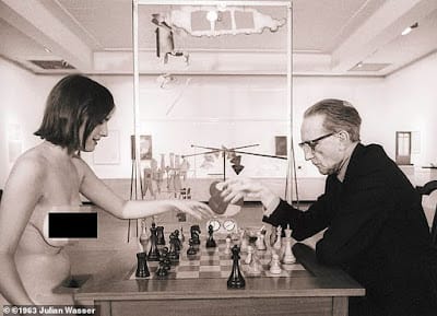 The brunette with unmissable 36DD breasts and famous bohemian parents became an icon of art and sex when she was photographed at age 20 playing chess naked with artist Marcel Duchamp in 1963 for a retrospective at the Pasadena Art Museum.