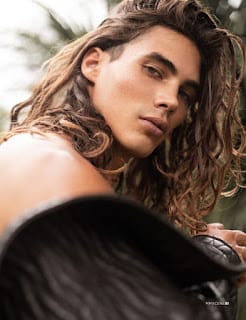 In charge of styling was Calvin Nymon, who for the session selected pieces from Les Hommes, Atelier Neutre, Sero Paris, to name a few. Beauty is work of Virginie Lacoste.” – Malemodelscene.net