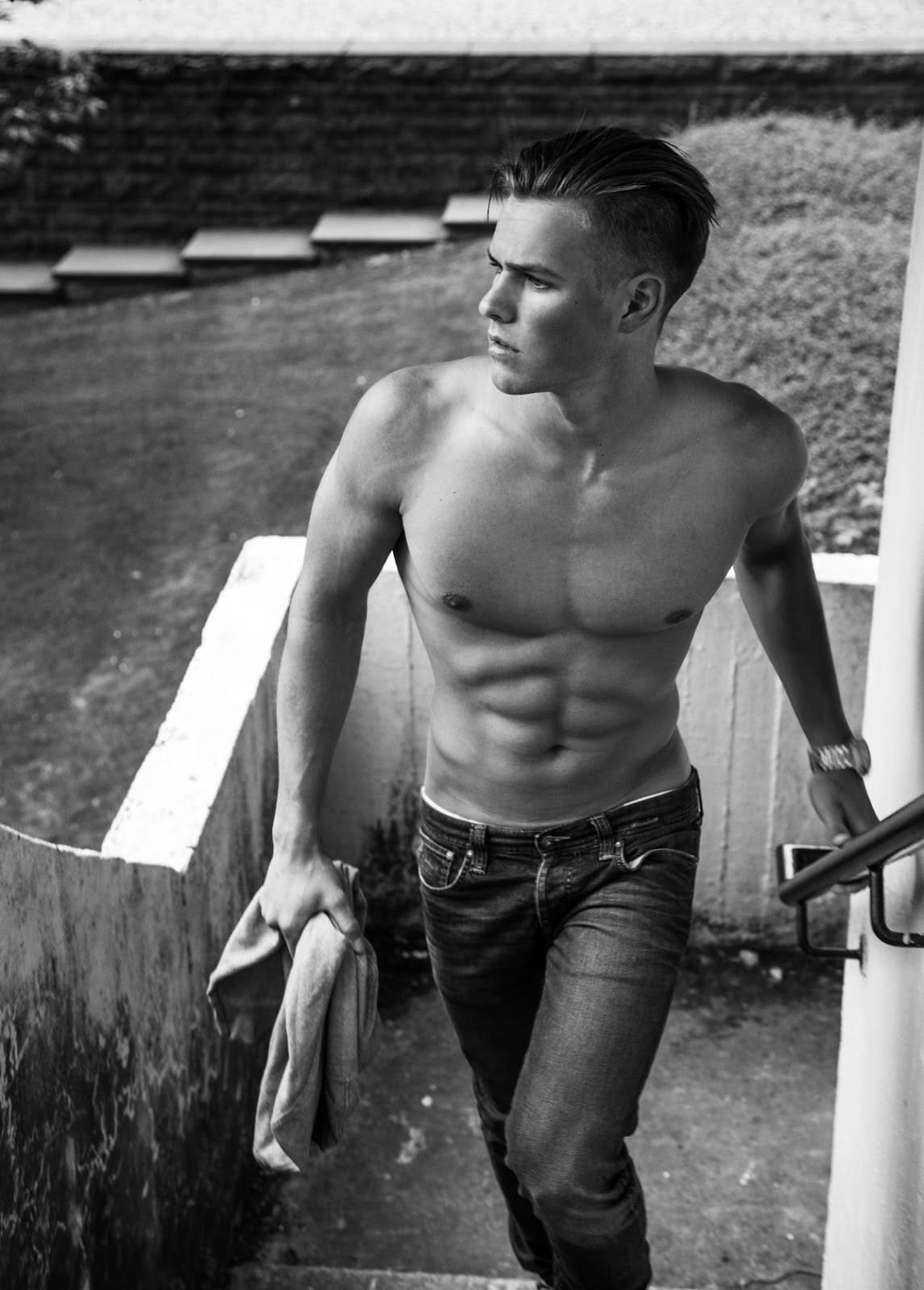 “Polish model Adrian Krzyzanski at Sight Management Barcelona is photographed by Kris Schmitz [KStudio] in a Homotography Exclusive titled “Intersektion”, with hair by Glenn Baeck [KStudio]. Adrian is wearing pieces from Armani, Ralph Lauren, Anthony Morato, Diesel, Zara and Levi’s.” – homotography.blogspot.com