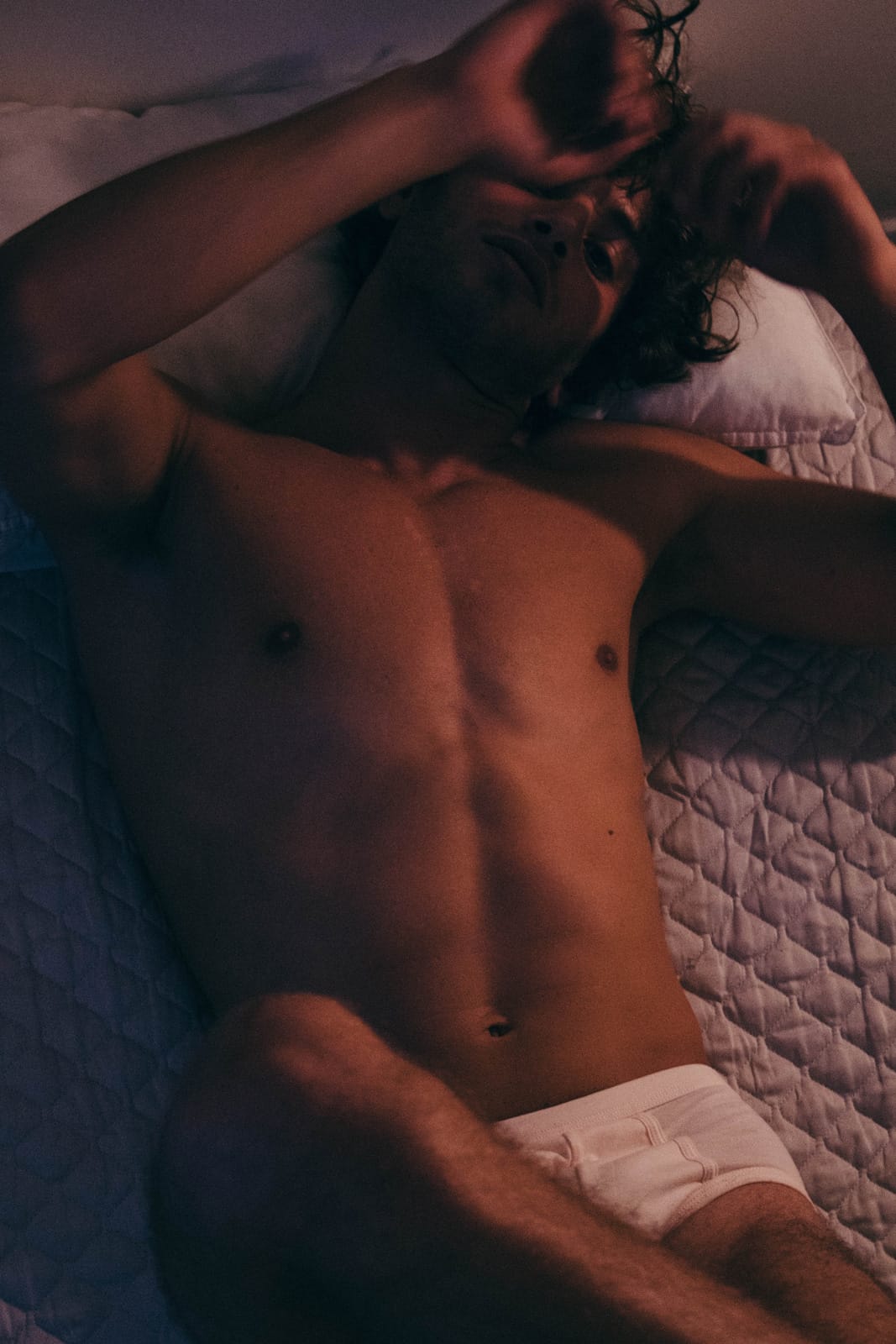 “British male model and actor Eyal Booker at Nevs London is photographed by Antonio Eugenio in the Homotography Exclusive story “Bedtime Stories” featuring underwear by Ron Dorff.” – homotography.blogspot.co