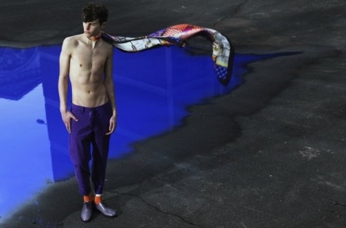 The super talented London-based photographer Dimitris Theocharis shot this bold and colorful editorial with model Saul Rodgers [Models 1 management]. Saul was styled by Guy Hipwell in an explosion of colors of the rainbow, often in the same piece. Courtesy of – thefashionisto.com