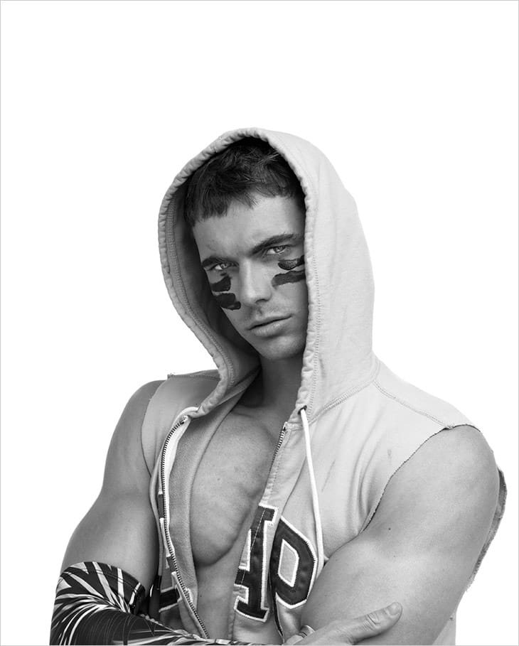 For the session Scott is wearing selected pieces from Ralph Lauren, Balmain, Calvin Klein, Celine, True Religion, Gap, and Rufskin.” – Malemodelscene.net