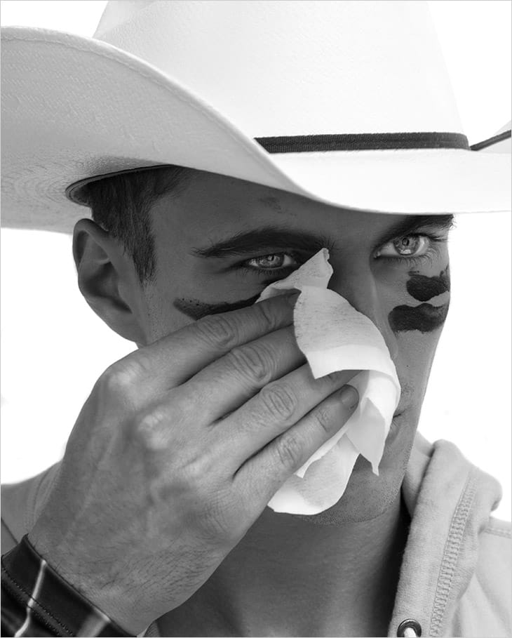 “Fashion photographer Baldovino Barani captured Nosebleed Cowboy story for Factory Fanzine‘s issue XXVIII featuring the handsome Scott Morton represented by Bananas Paris, Williams Agency, Wilhelmina London, and Next Milano. Grooming using Tom Ford for men.