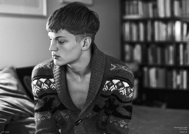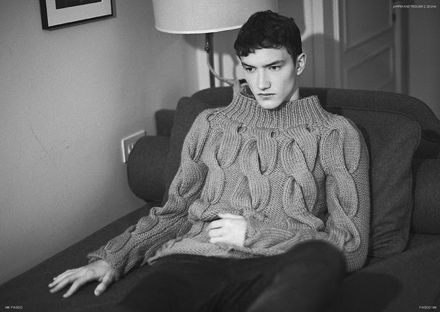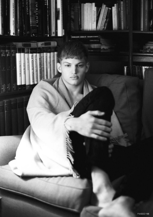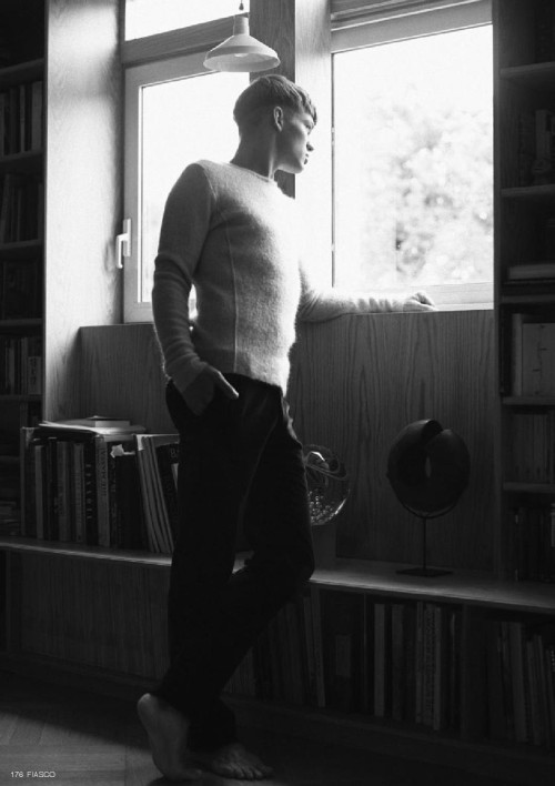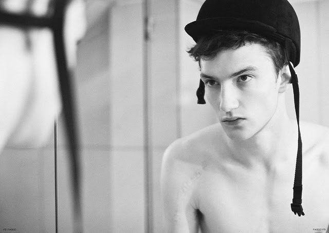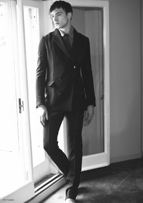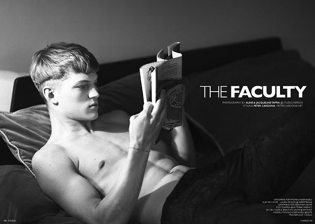The new ‘Black & White’ issue of Fiasco magazine features models Sebastian Sauve, Jacob Coupe and Thomas Hoefnagels in the editorial The Faculty, photographed by Aline & Jacqueline Tappia and styled by Peter Cardona. Courtesy of – Homotography