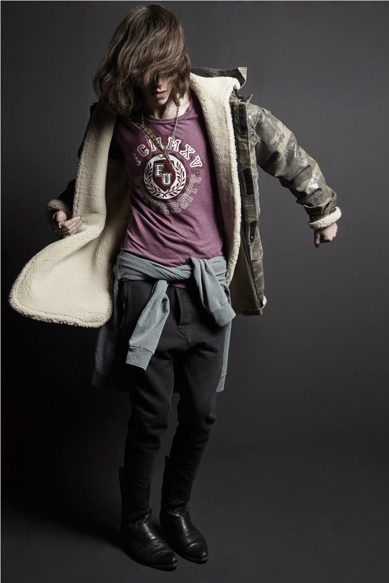 “Faith Connexion unveiled its first men’s line for the Fall/Winter 2015 season. The collection reflects the aesthetic principles of Faith Connexion, which firmly believes that fashion belongs to the street. So the brand’s collective reworked all the classic themes that make up the wardrobe of the modern man, from rock ‘n roll through preppy style, military uniforms, sportswear, and a hint of glam.