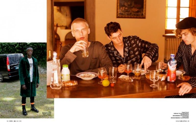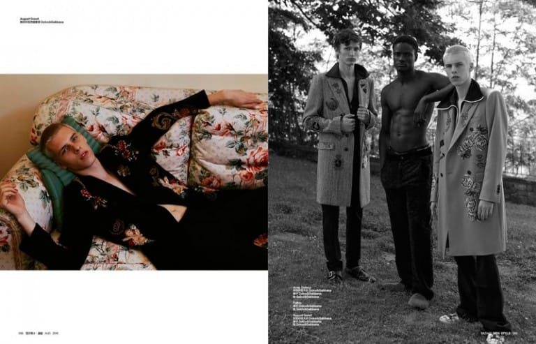 “Arnis Cielava, August Gonet and Christian Garcia shot by Liu Song and styled by Wei Yang, for the latest issue of Harper’s Bazaar China.” – FY Magazine.es