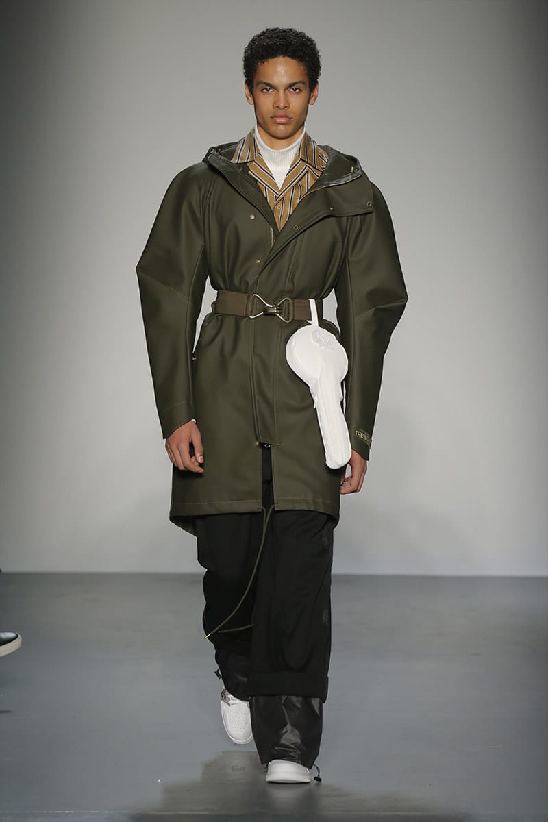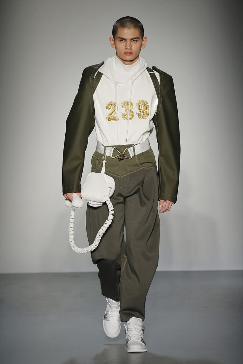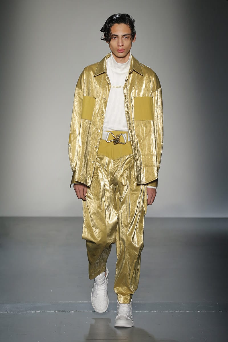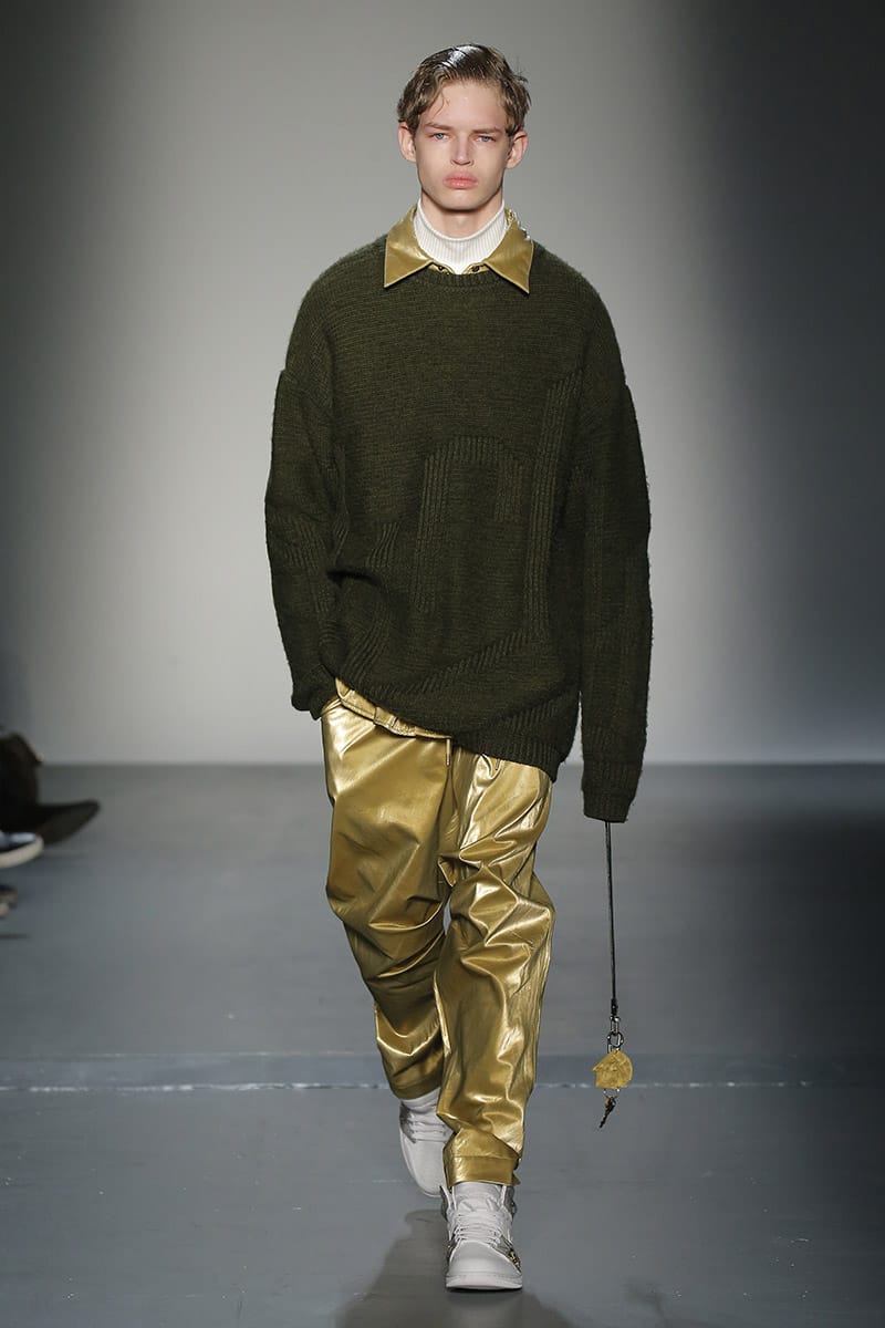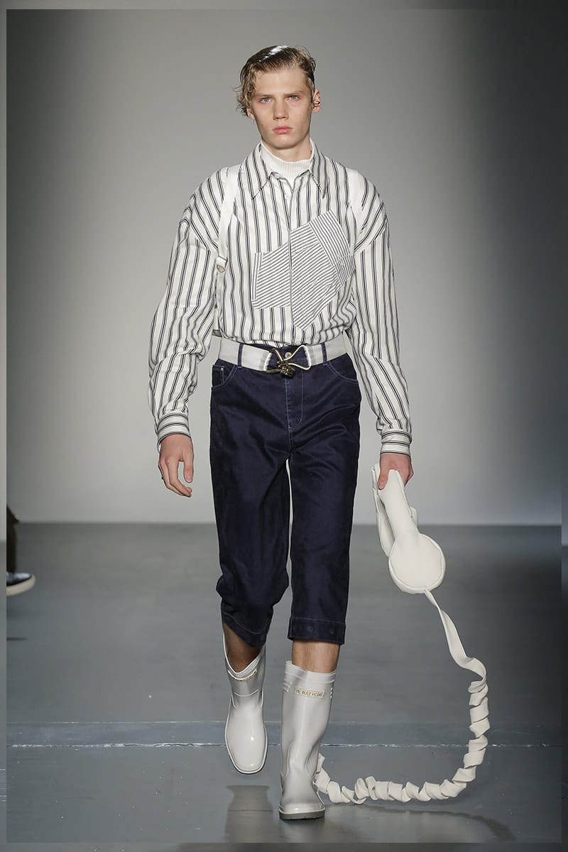 “No gender. No age. It doesn’t matter where you’re from it’s what you connect to,” said Wang. While many of Wang’s clothes are conceptual, (a reworked boyfriend shirt, attached to many others; inflated headphones) the concepts are easy to connect to. Take, for example, one of her Spring/Summer looks which proudly boasted an enlarged “Made in China” insignia on a T-shirt, sending editors into a frenzy. Feng Chen Wang makes clothes to react to. Clothes that make you think, feel, allow you to even question yourself, and your values.” – FY Magazine.es