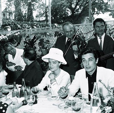 “Alain & Romy had lunch with others of their entourage at a Villa in Cannes. Delon changed his dark suit for a white suit and black shirt.”