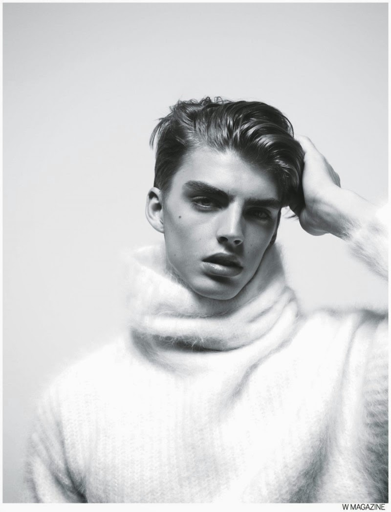 The New Normal-Reuniting with Mert & Marcus, models Daan van der Deen and Filip Hrivnak appear in the September 2014 issue of W magazine after the striking Versace fall/winter 2014 advertising campaign. Joined by model Steve Milatos and iconic beauties of the fashion world that include Kate Moss, Lara Stone and Mariacarla Boscono, the models show off their best angles for an epic story. Teaming up with W’s Edward Enninful, who’s in charge of the wardrobe department, the models are lensed wearing a selection of relaxed fall styles. From soft angora cardigans to plaid shirts, the boys deliver their best smiles wearing basic white cotton briefs and leather ankle boots. Courtesy of – thefashionisto.com