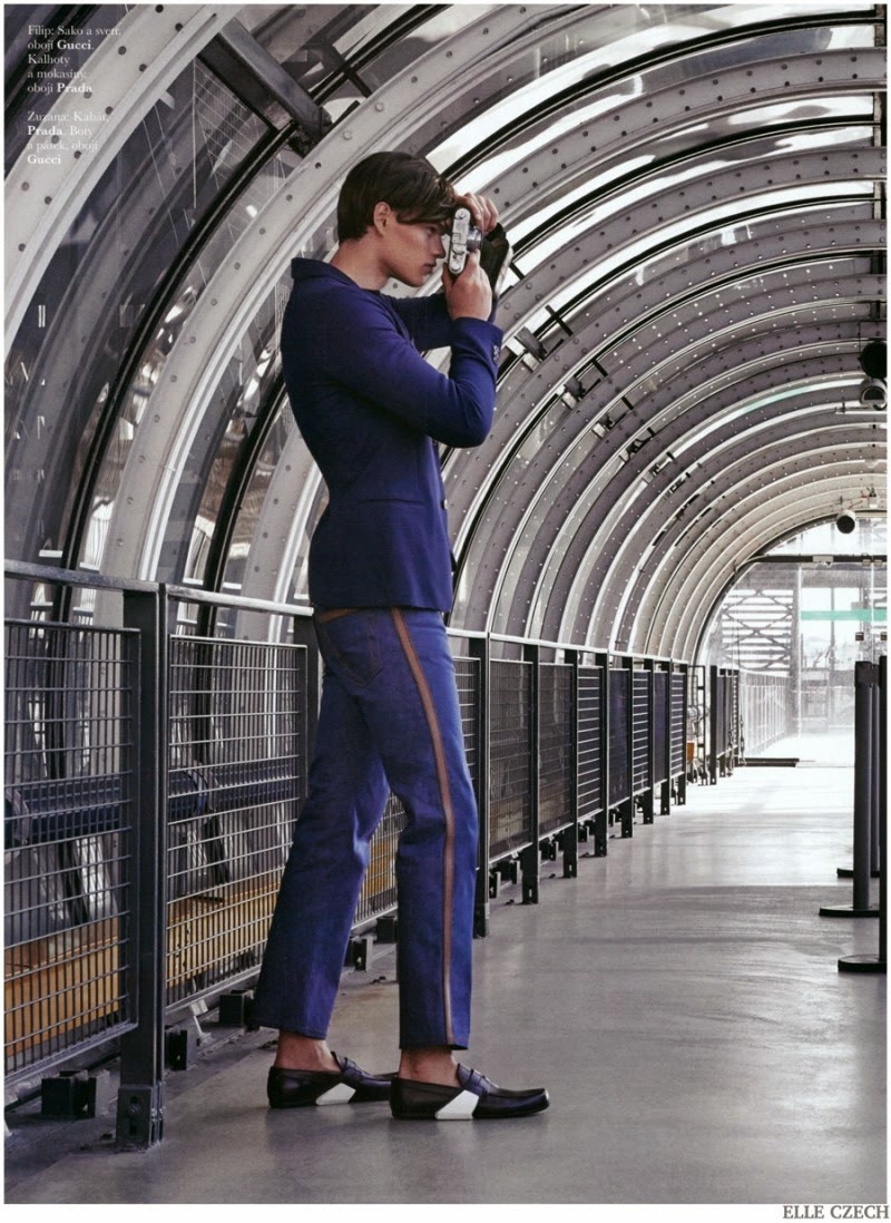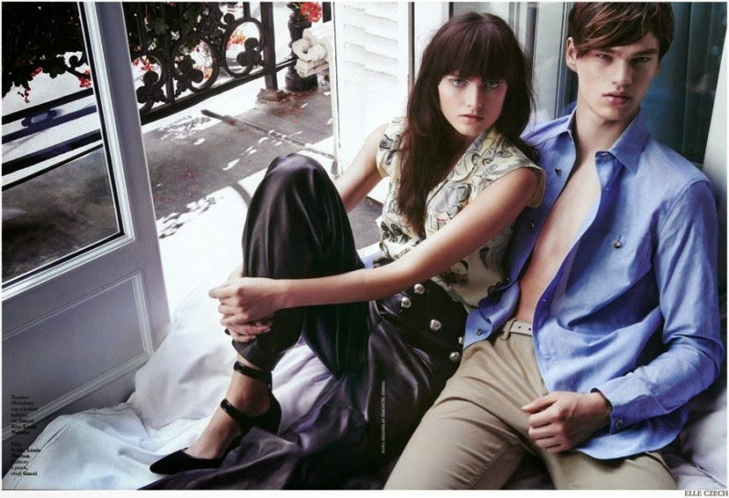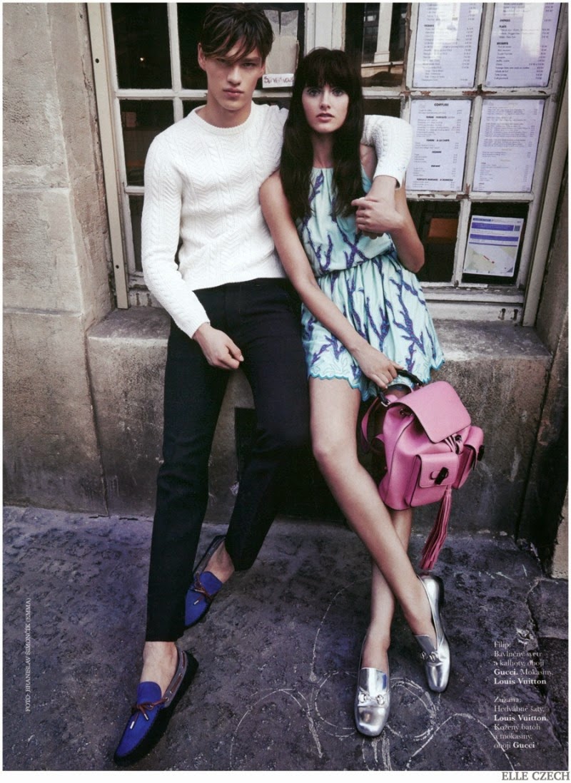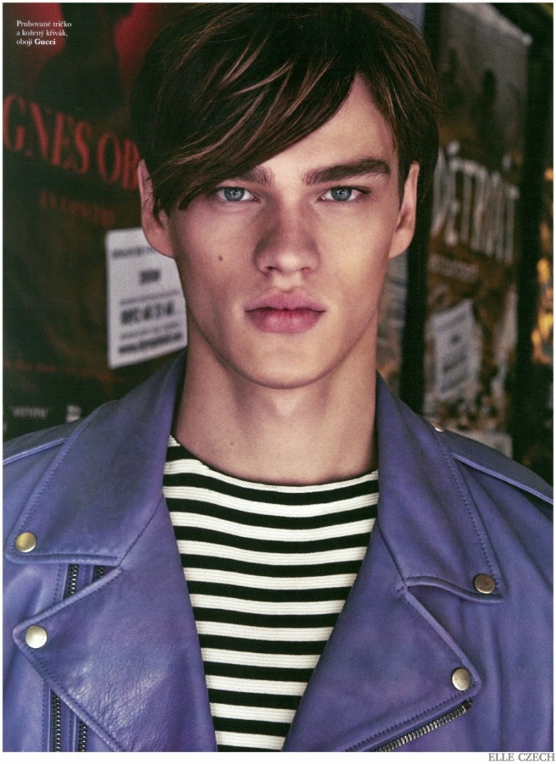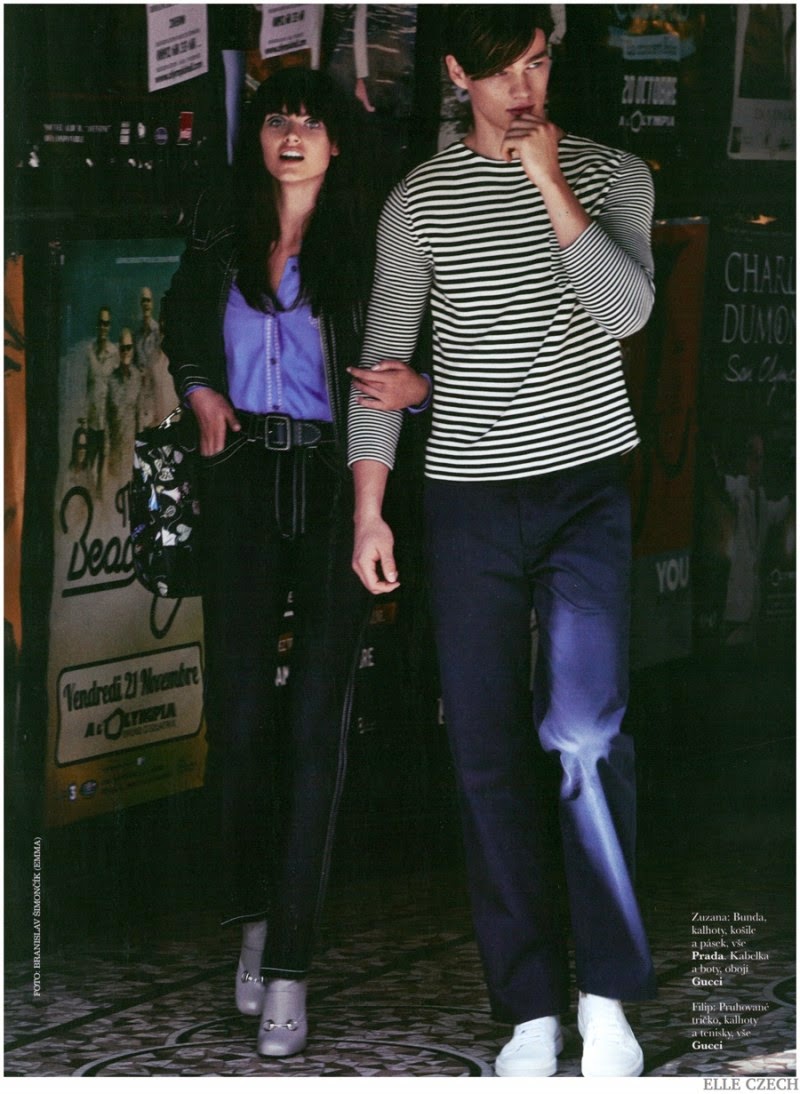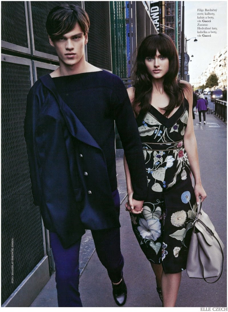 Photographed by Branislav Simoncik, Exit Model Management star Filip Hrivnak joins Zuzana Gregorova for January 2015 cover story of Elle Czech. After appearing in a minimal solo editorial, Filip couples up with Zuzana for a series of his and her fashions, executed with a relaxed youthfulness. Filip takes to the streets, on the go, captured in slim looks that include striped t-shirts, leather biker jackets and trim suits. Courtesy of – thefashionisto.com