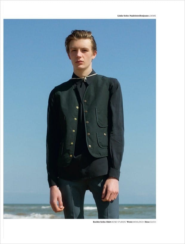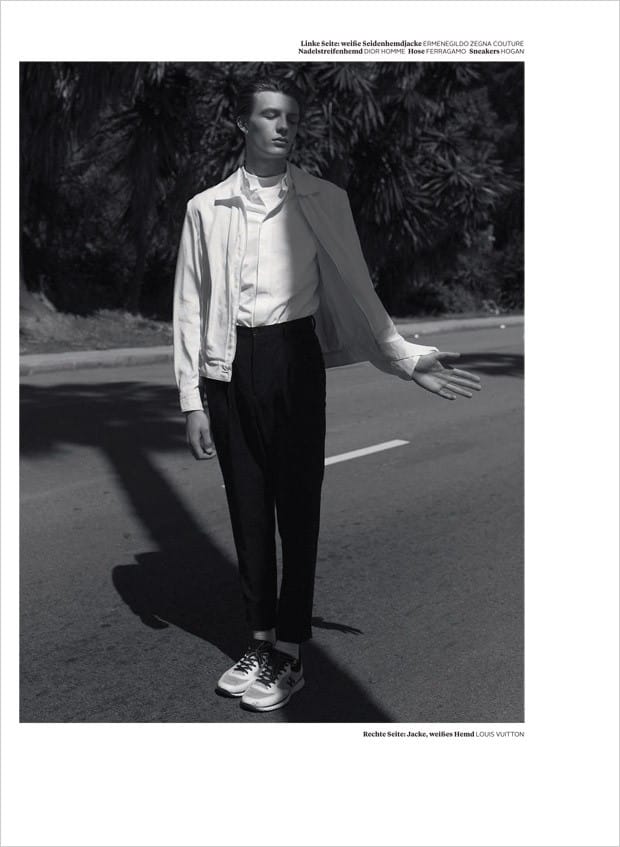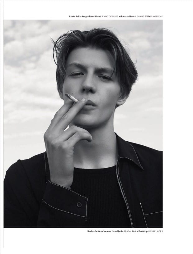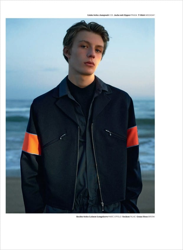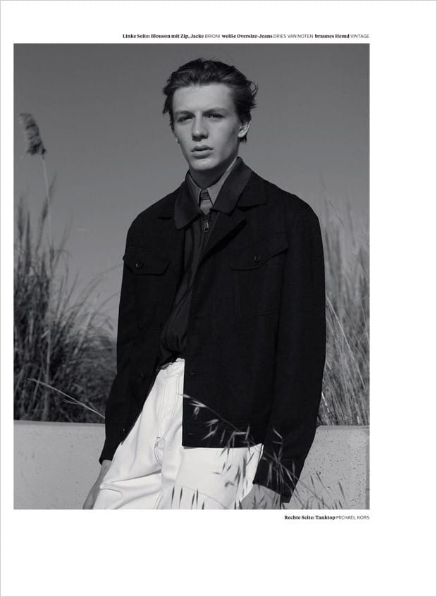 “Up and comer Finnlay Davis at Elite London stars in La Cote story captured for L’Officiel Hommes Germany‘s Summer 2016 edition by fashion photographer Wai Lin Tse, with casting direction from Affa Osman. In charge of styling was Isabelle Thiry, with grooming by Michael Jones.” – Malemodelscene.net