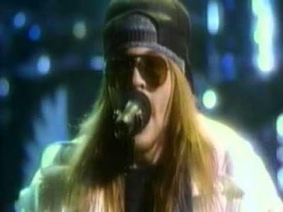 Let’s take a look back now to 1988 when they were the hottest rock band on the planet. Appetite for Destruction, their debut LP, came out in the summer of 1987, but it built very slowly and most people didn’t hear it until early the following year when MTV put “Welcome to the Jungle” in heavy rotation. The channel awarded them Best New Artist at the VMAs that year and let them play “Welcome to the Jungle” — sandwiched right between the Fat Boys and INXS —near the end of the night. As you can see in this clip, they absolutely killed it and made every other band seem obsolete by comparison.
