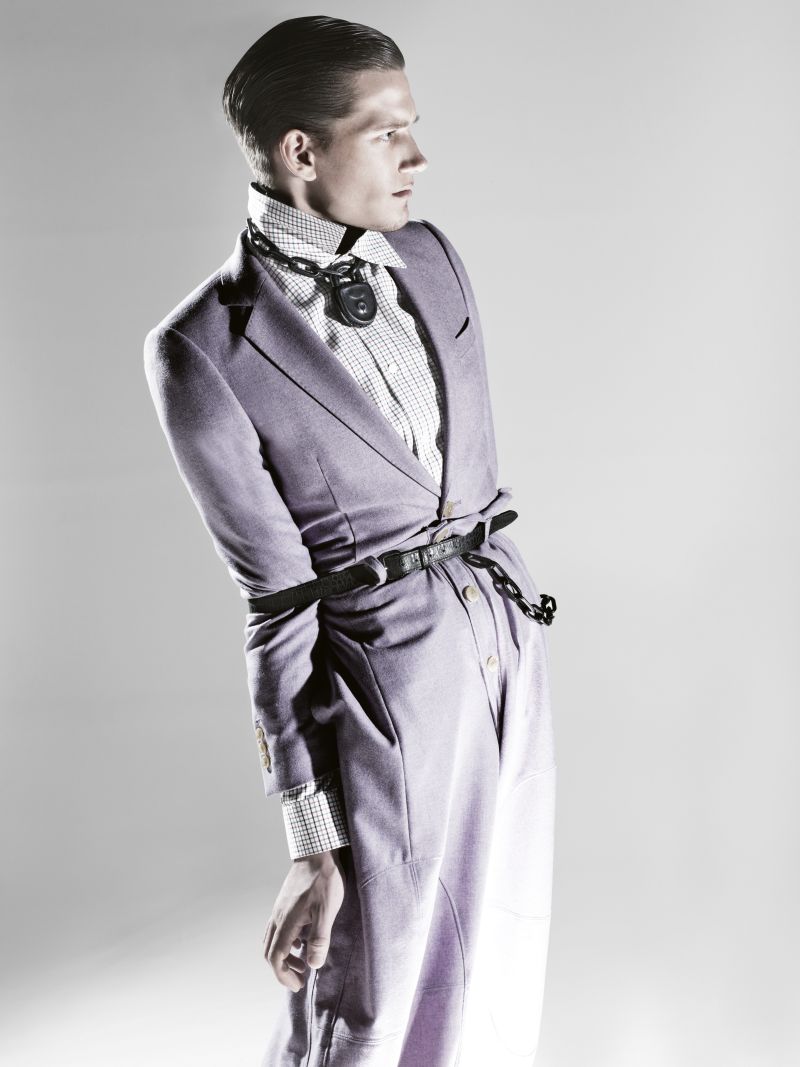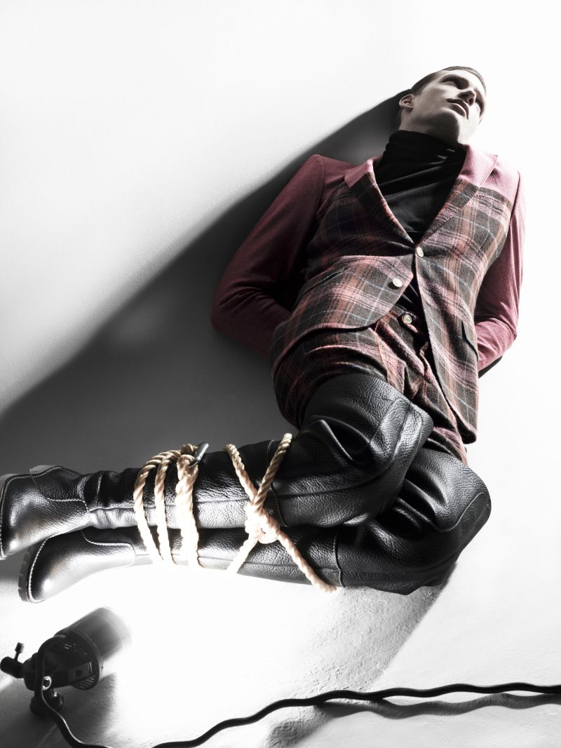 Walter’s Artifact–Model Florian Van Bael reunites with photographer Zeb Daemen, appearing in the latest issue of Prestage magazine. Tied up and captured with a certain eccentricity perfect for the fall/winter 2012 collection of Walter Van Beirendonck, Florian is styled by Ferry van der Nat. / Hair by Stef Ralbovsky. Makeup by Sigrid Volders. Courtesy Of Thefashionisto.com