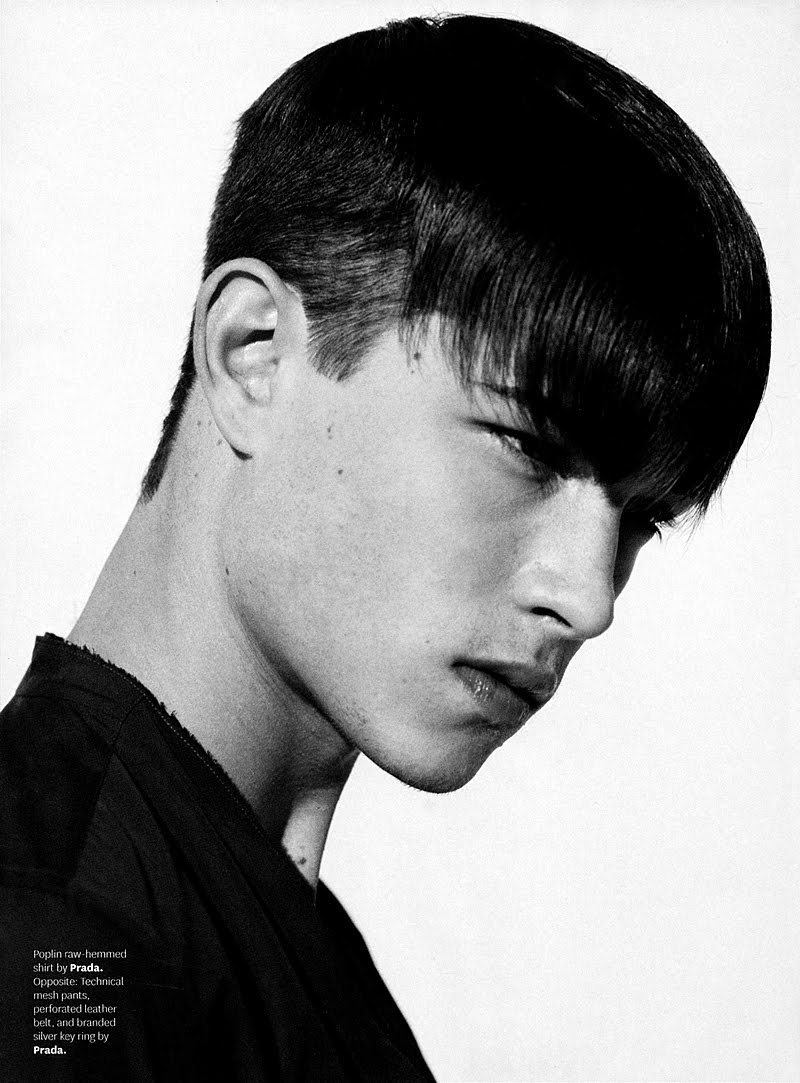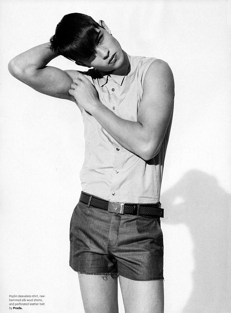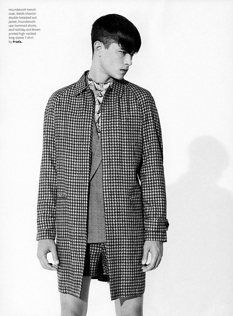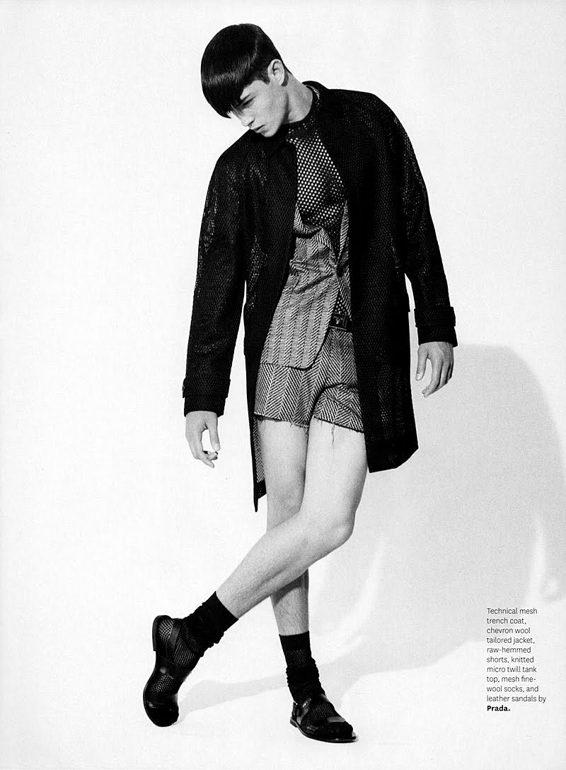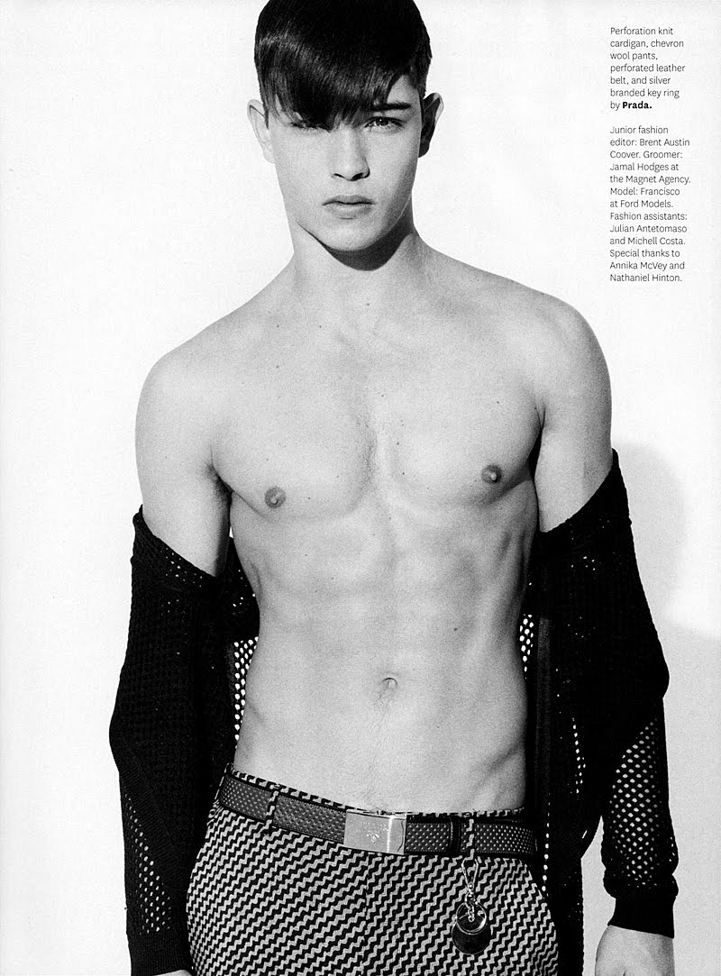 Francisco Lachowski appears wearing nothing but Prada in a spread shot by photographer Bruno Staub.