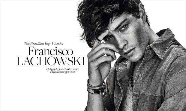 Supermodel Francisco Lachowski takes the cover story of Canadian Dress To Kill Magazine‘s Adrenaline issue lensed by fashion photographer Jean-Claude Lussier. In charge of styling was Jay Forest, with art direction by Sylvain Blais, and grooming from Nicolas Blanchet.