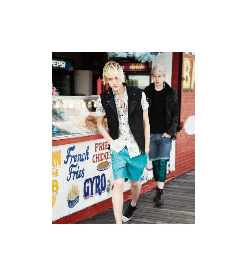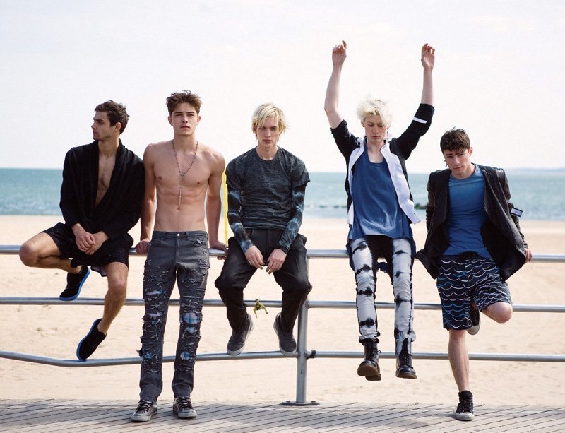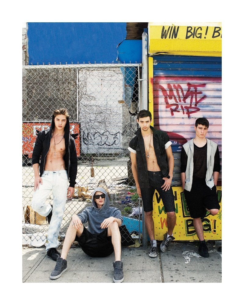 ‘It’s a boy’s day out on the boardwalk for Francisco Lachowski, Paul Boche, Max Krieger, Doug Bell and Ryan Schira. One of the prized attractions of Guapo’s recent issue, the gang was photographed by Marley Kate and outfitted by Ian Bradley. Making for quite the interesting group, Kate’s gang hangs out in a cool array of pieces from young labels such as Ksubi, Obesity & Speed and Jeremy Scott.’ – Courtesy of Thefashionisto.com