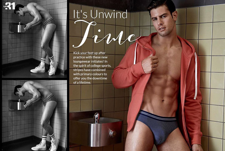 “Canadian fashion retailer Simons enlists the handsome Franky Cammarata to model underwear and leisurewear for their latest lookbook captured by fashion photographer Greg Vaughan. In charge of styling was Rod Ds, with grooming from beauty artist Paco Puertas.” – Malemodelscene.net