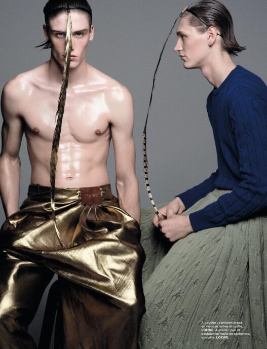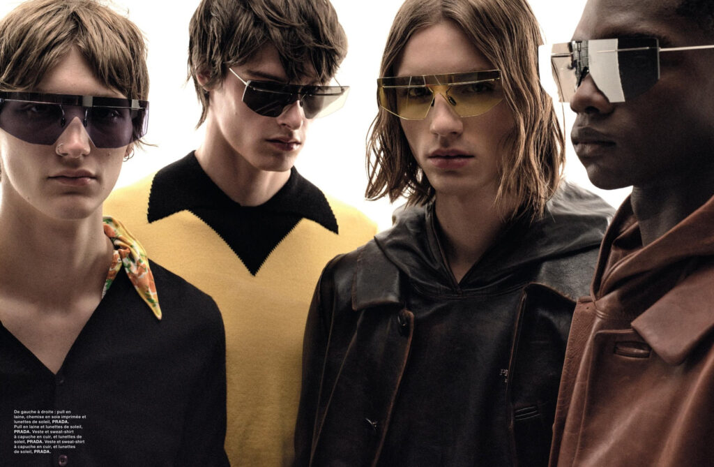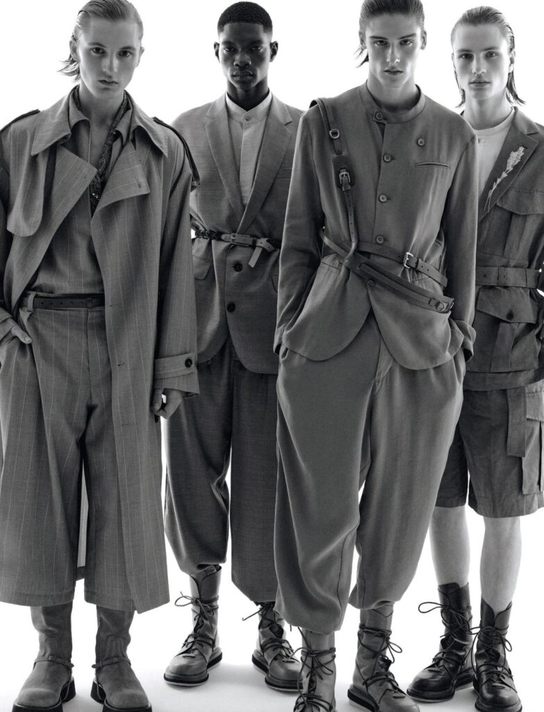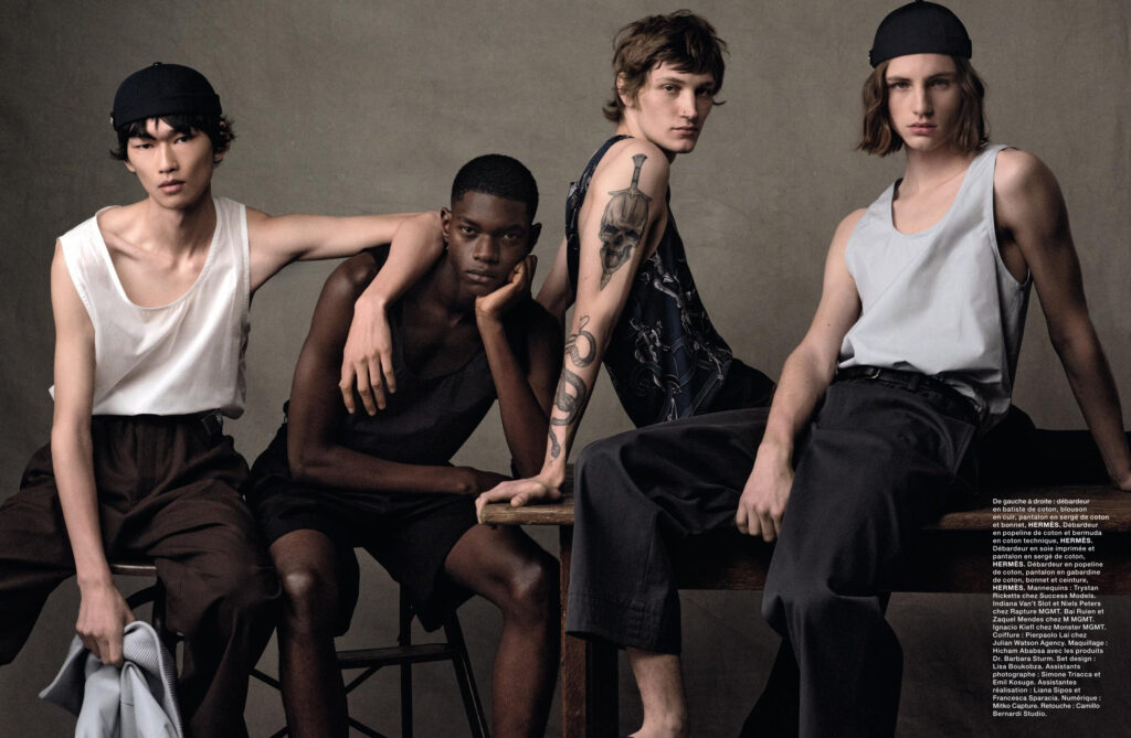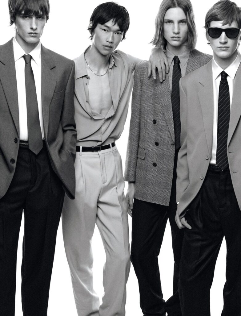 Models Trystan Ricketts, Indiana van’t Slot, Niels Peters, Bai Ruien, Zaquel Mendes and Ignacio Kiefl in “Boys bands.”
