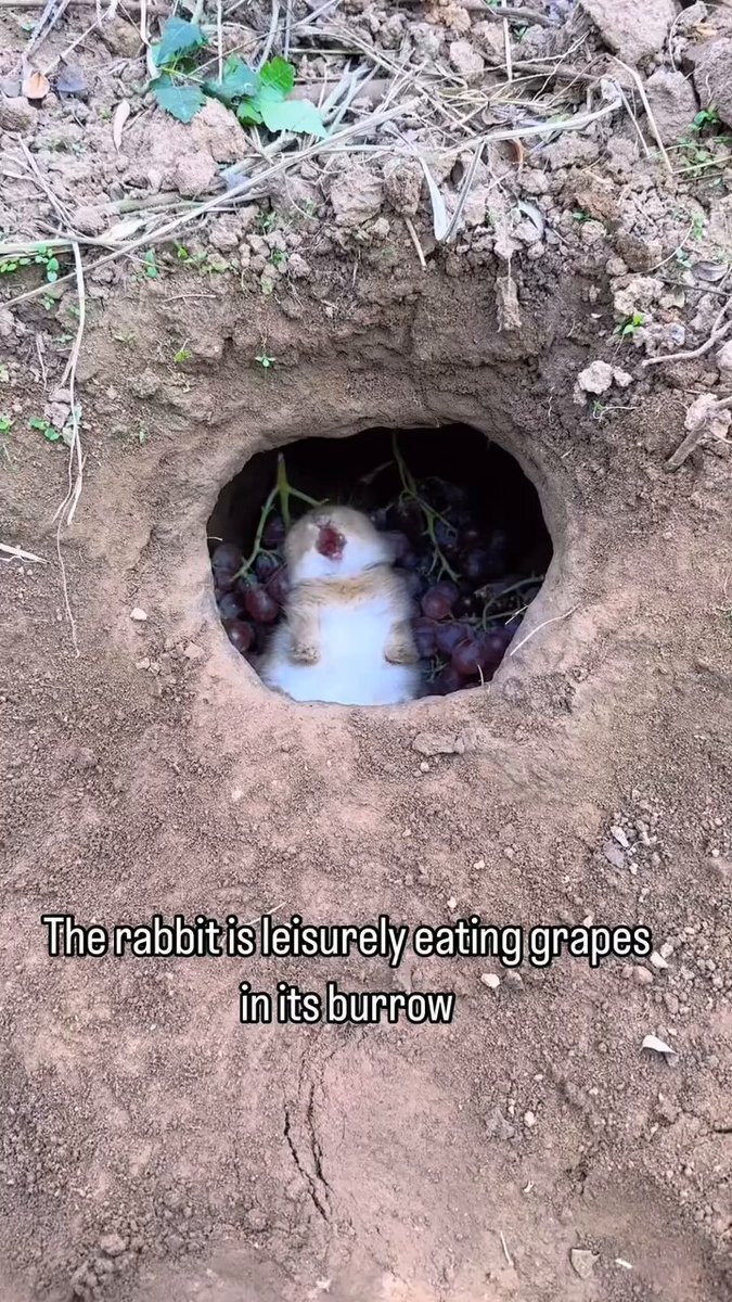 This little rabbit is out here hanging in his warm fuzzy burrow, lying on his back. Surrounded by grapes, and munching away like he owns the place. The definition of pure nd genuine happiness…