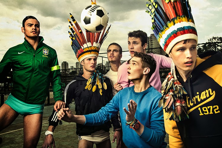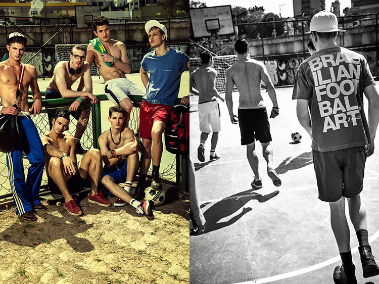 Rafael Desimon, Luís Coppini, André Bortolan, Fabrício Bach, Josué Wiese, and André Kherwald, styled by Paulo Martinez and photographed by Gustavo Zylbersztajn for the latest issue of Pulp, dedicated to Brazil.