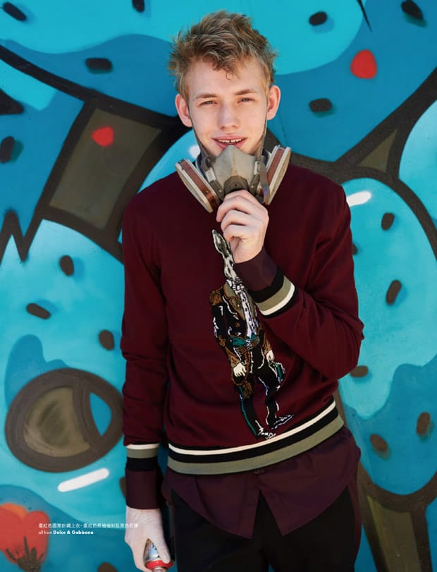 For the session Rafal is wearing selected looks from the likes of Paul Smith, Bottega Veneta, Burberry, Dolce & Gabbana, Saint Laurent, and Gucci, among other. ” – Malemodelscene.net