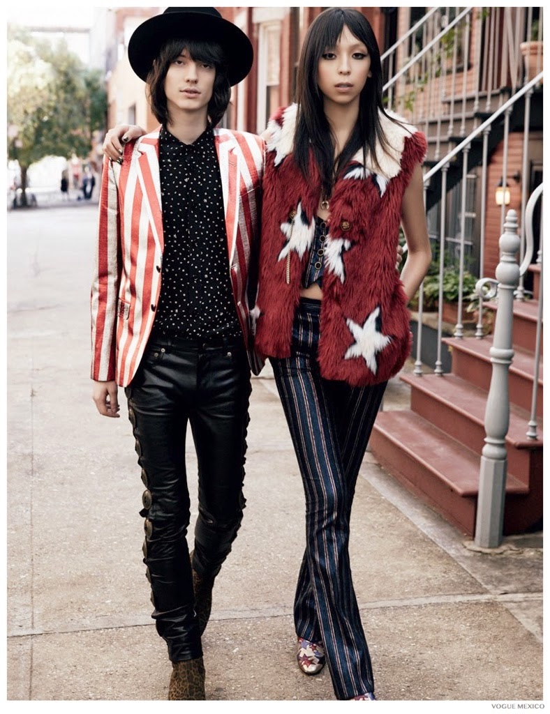 Retro Flair-Way Management model Gabriel Marques continues his impressive run of fashion editorials with a new story lensed for the December 2014 edition of Vogue Mexico. Photographed by David Roemer, Gabriel plays one half of a stylish couple. Wearing lean, leather trousers with printed blazers, shirts and contemporary hats, Gabriel exudes a rock ‘n’ role edge with styling by Sarah Gore Reeves. Courtesy of – thefashionisto.com