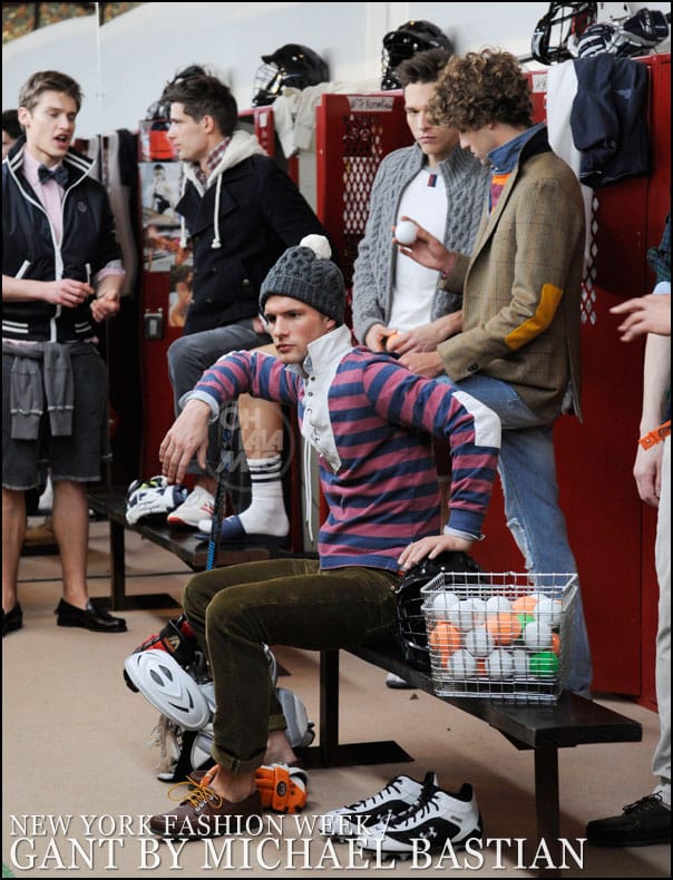 GANT by Michael Bastian unveiled its new collection to be launch worldwide in August during New York fashion week. They had the great idea to take over an old-school gymnasium and build a presentation area that was part locker room, part streetscape, with some of the hottest models and I have some stills just for your courtesy from GANT.