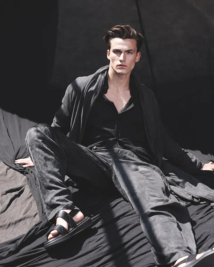 The editorial focuses on presence and instinct through stripped-back styling and sculptural composition.