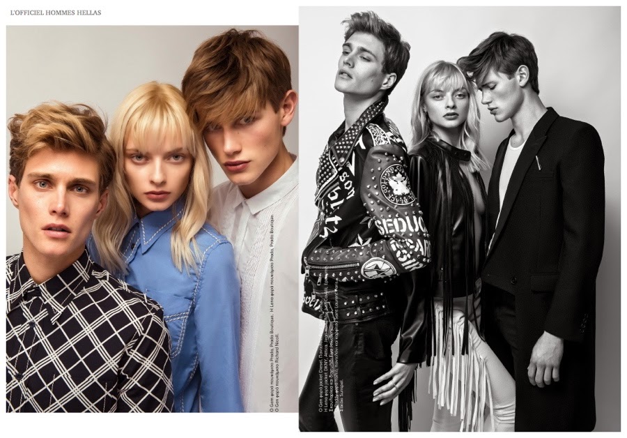 “Joined by Lena, Gen Huismans and Paddy Mitchell grace the pages of L’Officiel Hommes Hellas’ latest issue. Connecting with photographer Iakovos Kalaitzakis, the trio are Friends for a luxurious shoot, styled by Anna Foster. Among the eclectic styles featured are looks from Bottega Veneta, Issey Miyake and Prada.” -TheFashionisto.com
