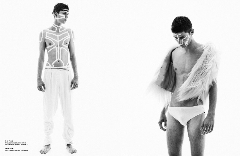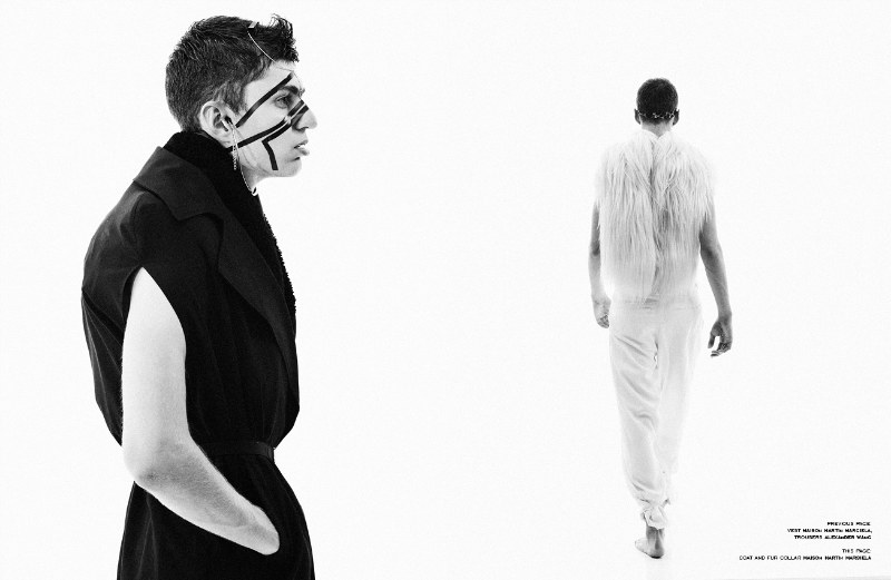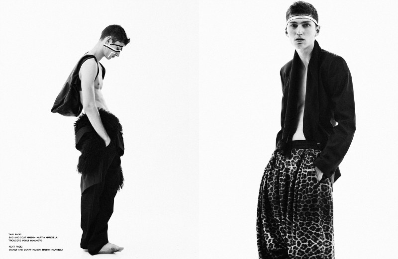 Voodoo Boy–For the male issue of GIA magazine, cover star Georgi Yankov is enlisted in a polarizing editorial with photographer Vasil Germanov. From the likes of Martin Margiela and Yohji Yamamoto to Yves Saint Laurent, Georgi is outfitted by Nicolay Pachev in ensembles of great proportion and shape. – Courtesy of thefashionisto.com