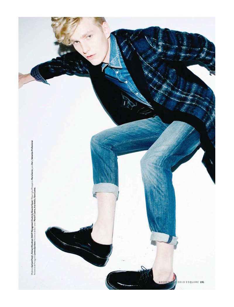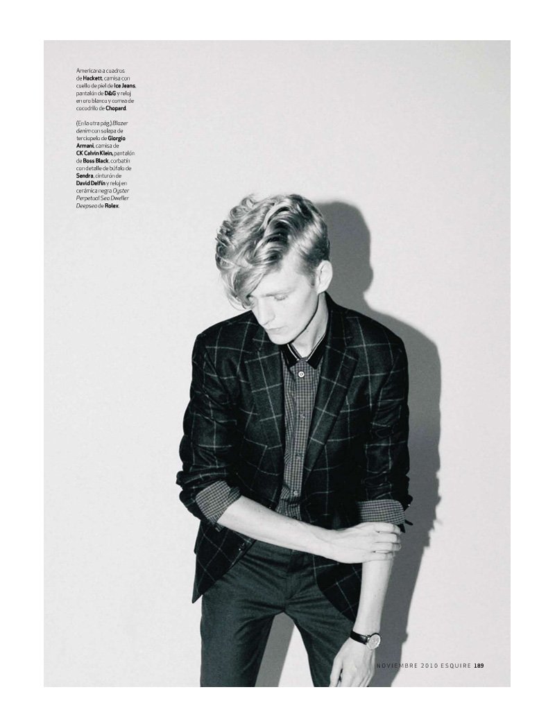 Gerhard Freidl and Richard Wyndham channel the classic teddy boy for their recent shoot in the November issue of Esquire España. Photographed under the direction of Chabela García by Chus Antón, the Sight models face high exposure for a fall wardrobe of Bottega Veneta, Giorgio Armani and other labels styled by Beñat Yanci. Courtesy of – thefashionisto.com