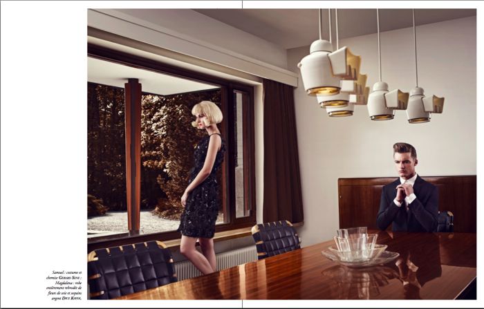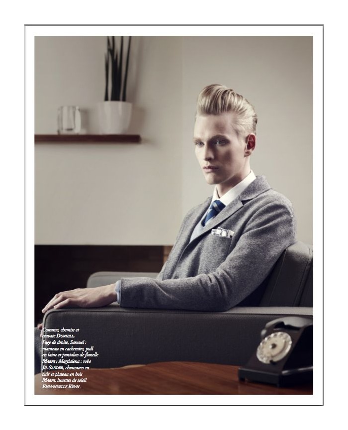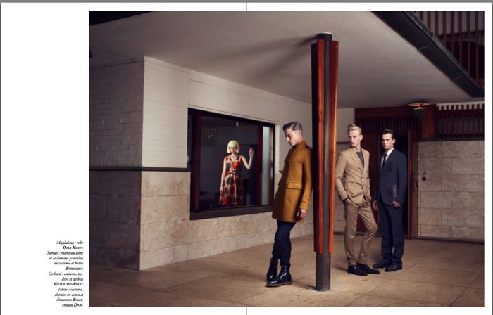 La Villa–New Madison models Gerhard Freidl and Tobias Brahmst are joined by Angels and Demons’ Samuel Daynie for a minimalist photo shoot with photographer Thomas Laisné. With fashion editor Richard Voinnet also behind this story, the trio remain sullen in an aesthetically unconventional dwelling whilst donning sleek suiting pieces from Gerard Sene, Viktor and Rolf, Burberry and more. / Hair by Richard Blandel. Courtesy of thefashionisto.com
