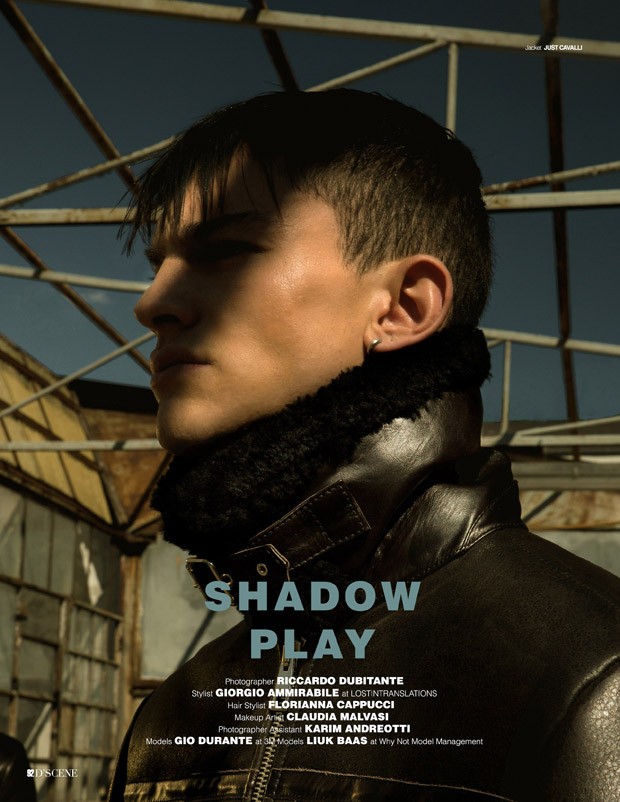 Shadow Play story captured by fashion photographer Riccardo Dubitante for our D’SCENE Magazine‘s latest issue features up and coming models Gio Durante at 3MModels and Liuk Bass at Why Not Models. In charge of styling was Giorgio Ammirabile at LOSTINTRANSLATIONS with makeup by Claudia Malavasi, and hair styling by Florianna Cappucci. Photo assistance by Karim Andreotti.