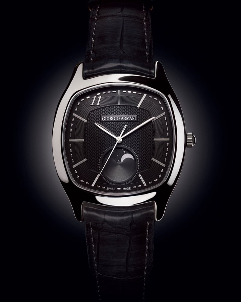 Giorgio Armani revisits a familiar chapter with the latest for the “Giorgio Armani 11 timepieces.” A continuation of a series.