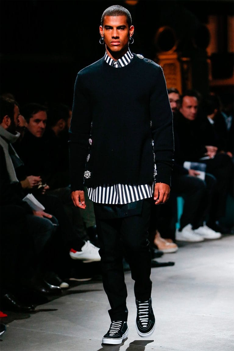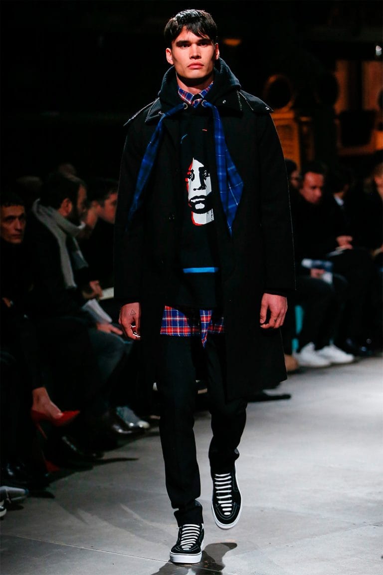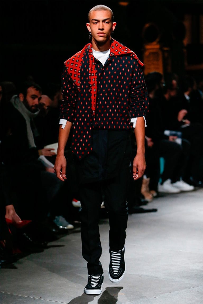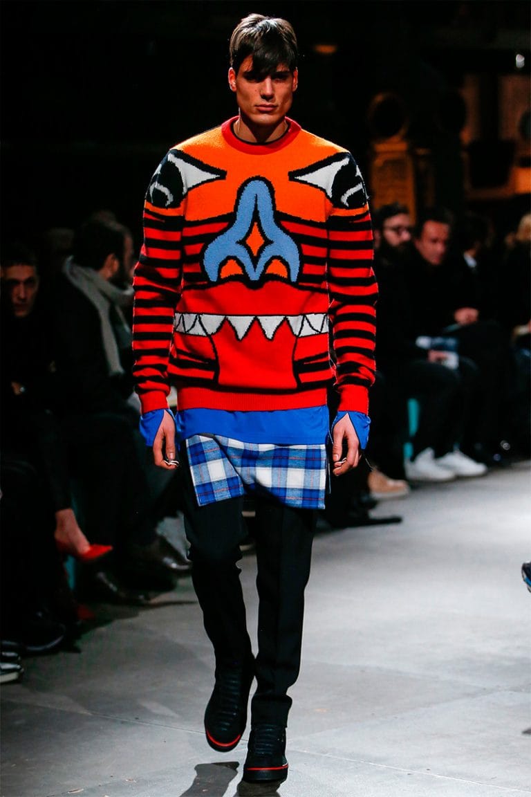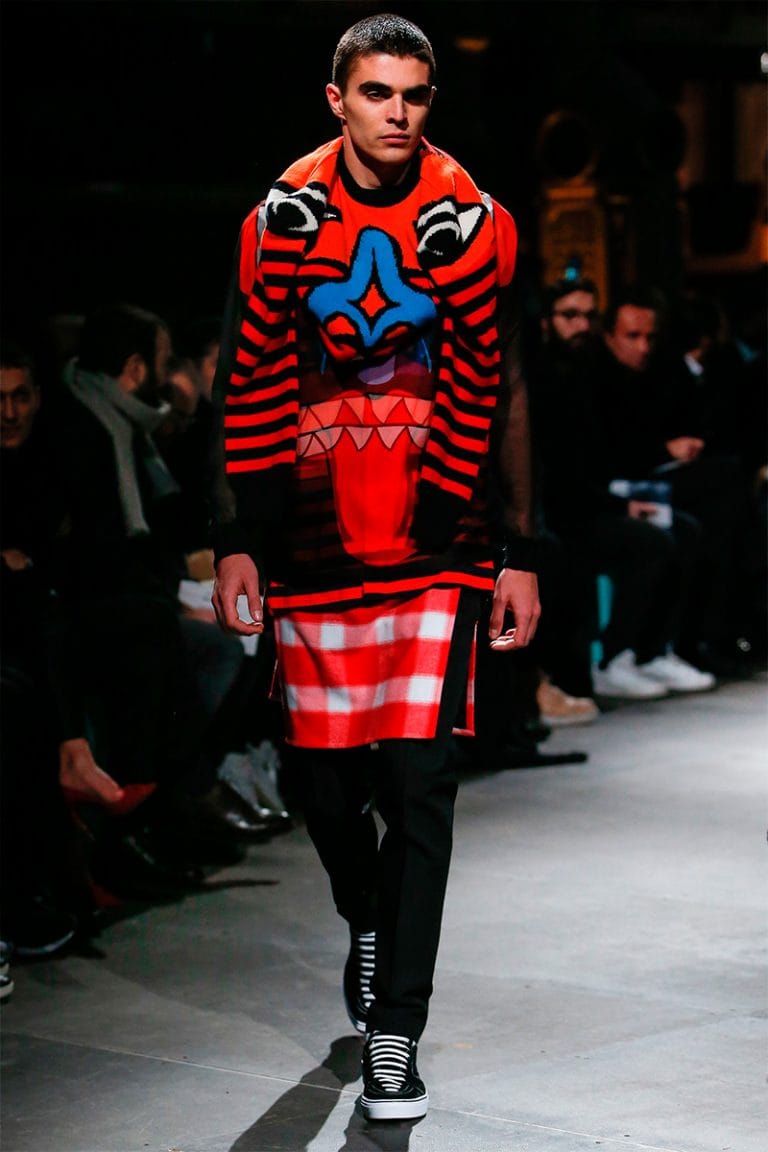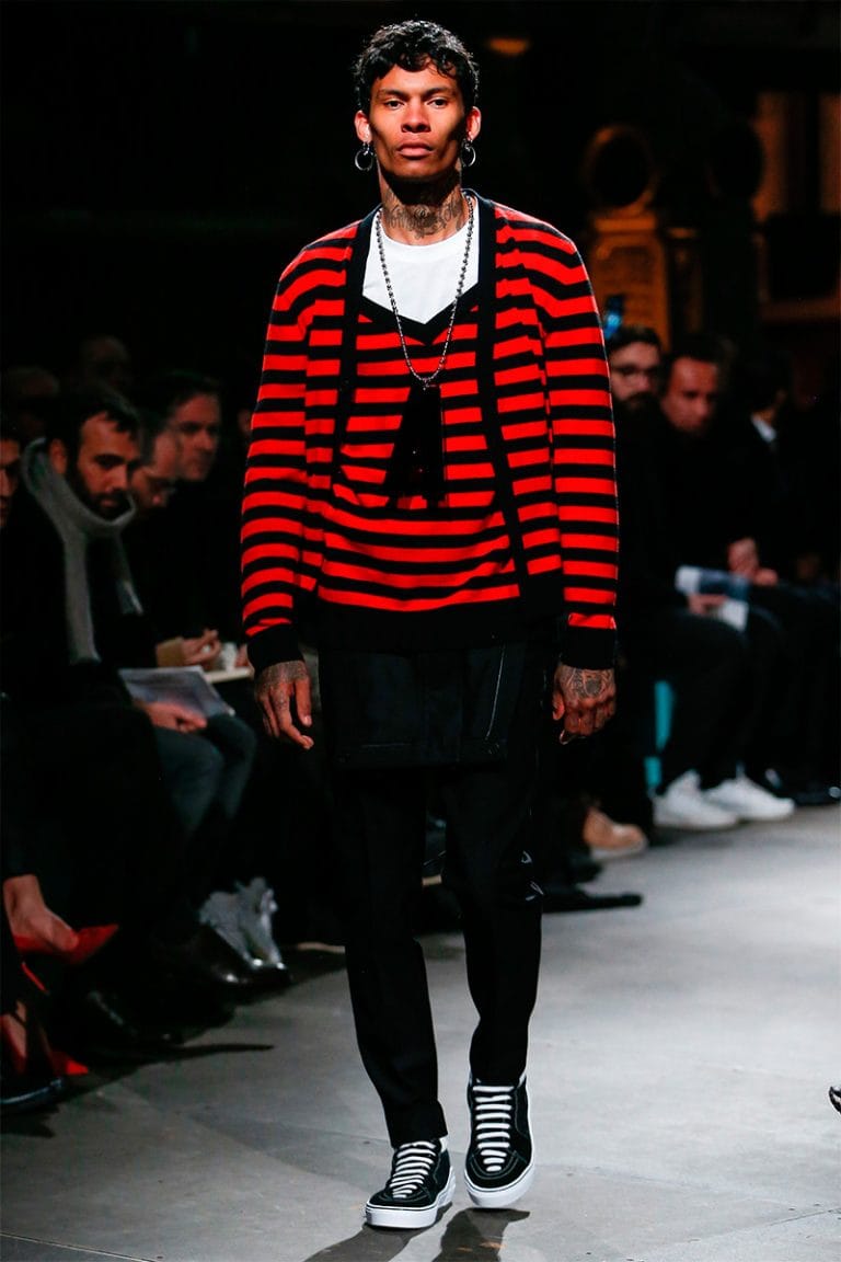 “For Fall/Winter 2017, Riccardo Tisci used Western American references out of his childhood memories to build a positive Givenchy collection made of signature House codes such as horizontal stripes, stars, embroidered check patterns and graphic colorful prints.” – FY Magazine.es