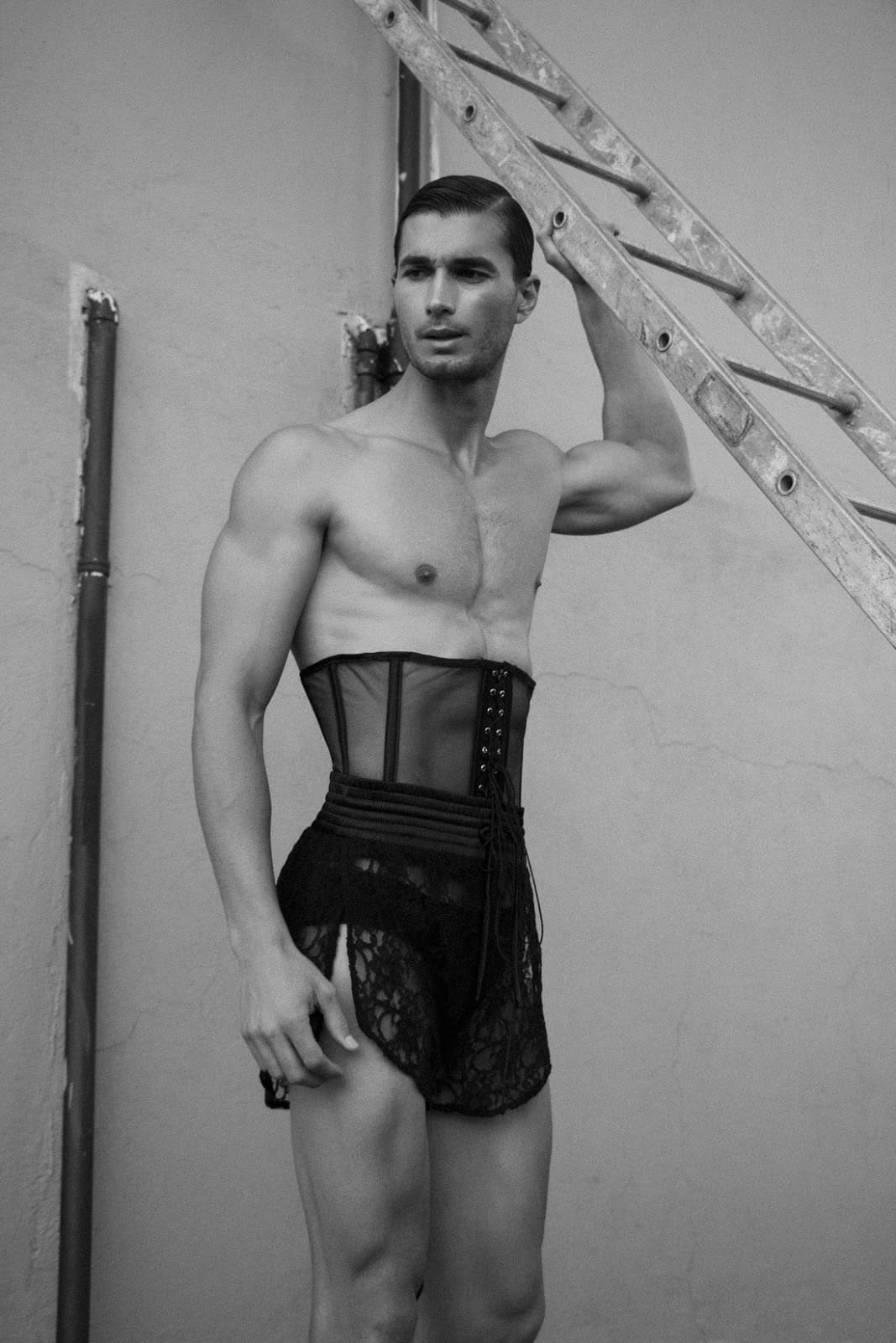 “Models Ygor Pignatari at Queta Rojas and Nicolas Palazzolo at GH Management are photographed by Alan Román in the story “Glasgow”; with art direction by Israel Escareno, grooming by Le Puquranche, and styling by Israel Escareno and Alan Roman. The models are wearing pieces from Menagerié & Gustavo Garcia.” – homotography.blogspot.com