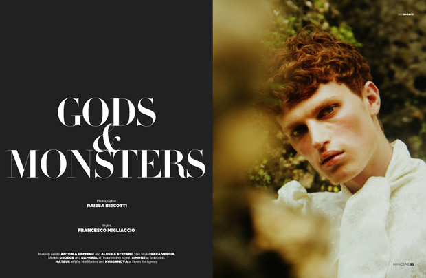“Fashion photographer Raissa Biscotti teams up with stylist Francesco Migliaccio for Gods and Monsters story coming from the pages of our MMSCENE Magazine‘s August 2018 edition. Stars of the session George and Raphael at Independent Model Management, Simone at 3mmodels, Mateus at Why Not Management, and Kurganova at Boom Models, are wearing selected pieces from M140, Max&Co, Malibu1992, Federica Cina, AU197SM, Nordio, Mes Demoiselle, and American Vintage.” – Malemodelscene.net