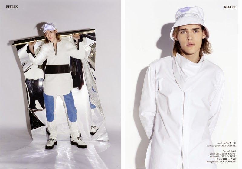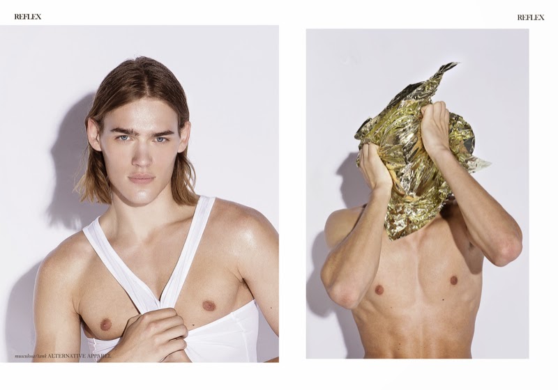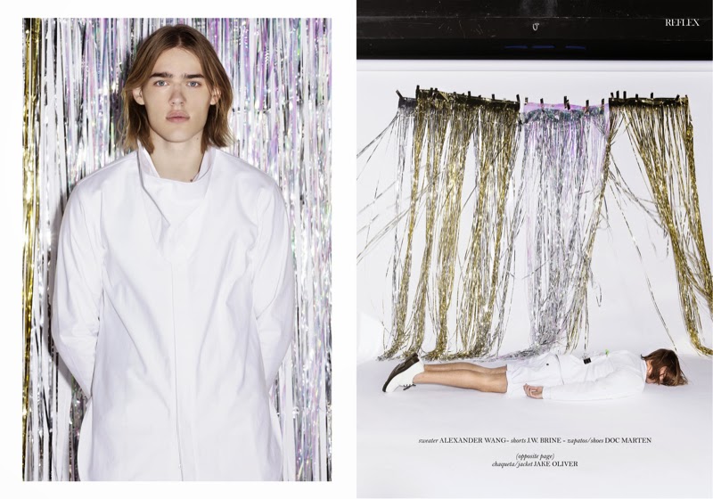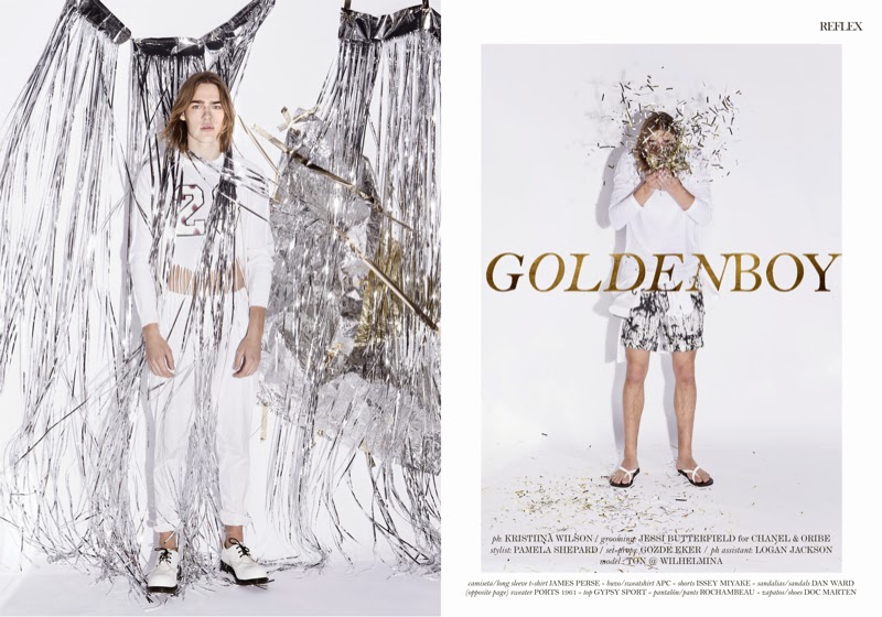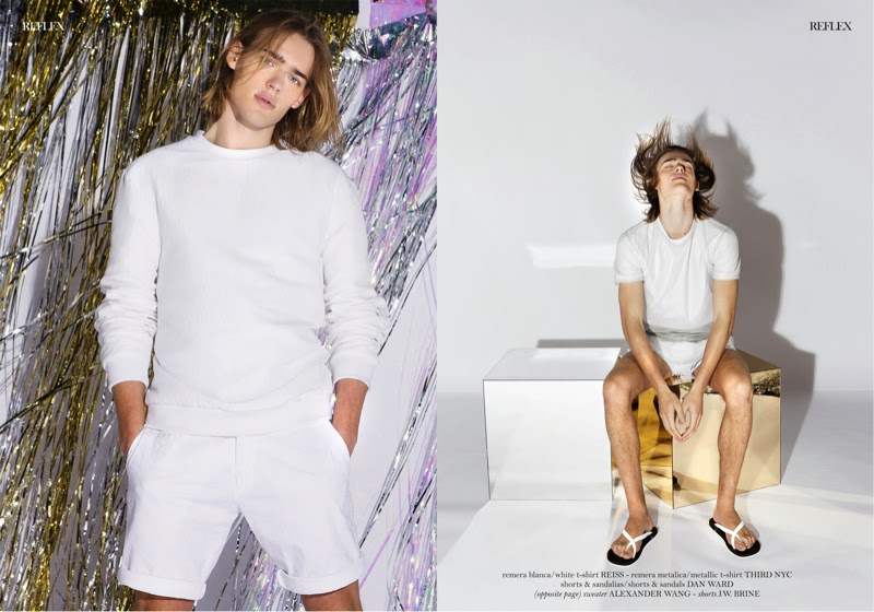 “Boy–In addition to its cover featuring Andres Risso, Reflex Homme taps model Ton Heukels for a cover story by photographer Kristiina Wilson. Styled by Pamela Shepard for the magazine’s May edition, Ton is a vision in white as he is accented by silver and gold set props. Wearing breathable fashions, Ton models essential looks from independent designers such as Miguel Antoinne.” – The Fashionisto