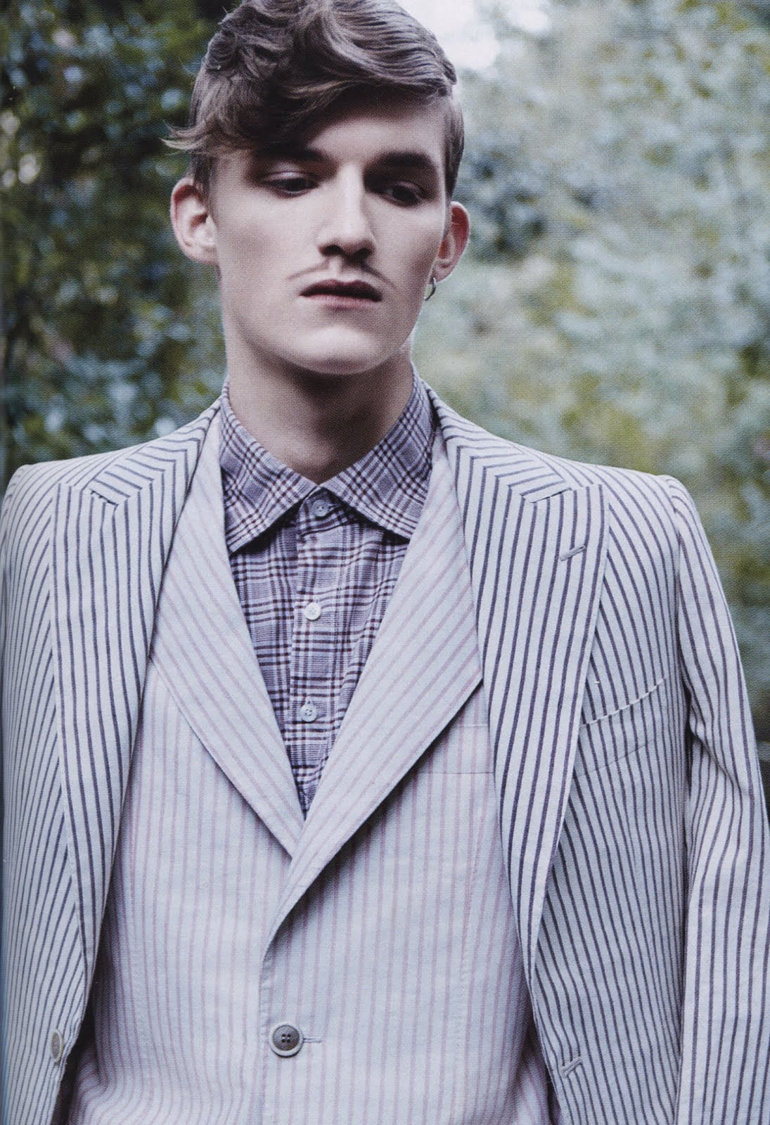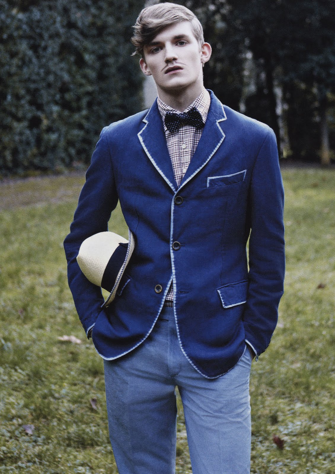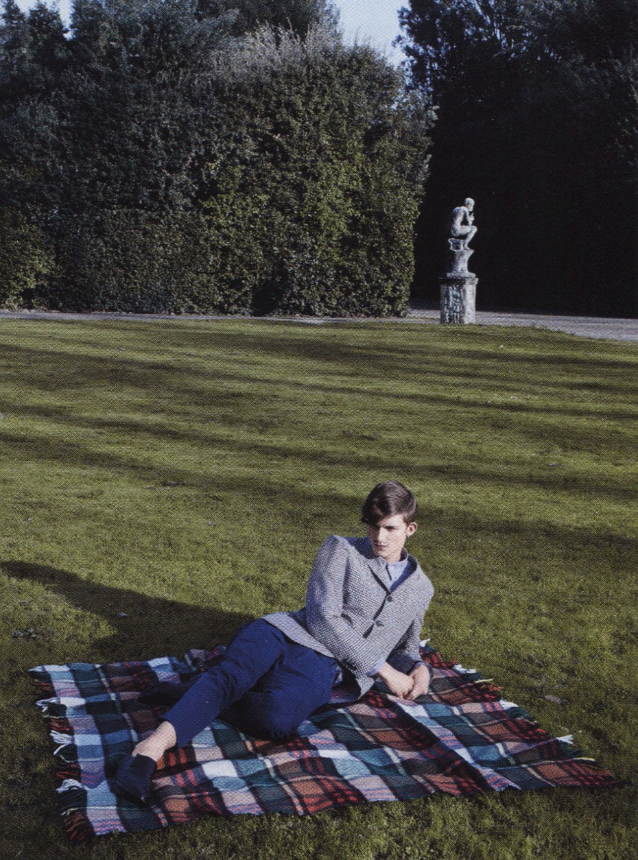 “Ich trug als erster türkise Polyesterhosen ” (‘I was the first to wear turquoise polyester pants’). This sentence by German designer Wolfgang Joop, now 66, is the title of this editorial by Andreas Krings featuring Wunderkind-clad Charlie Westerberg sharply groomed by Astor Hoxa and shot in Milan by Julian Broad for the current issue of German fash mag GQ Style.