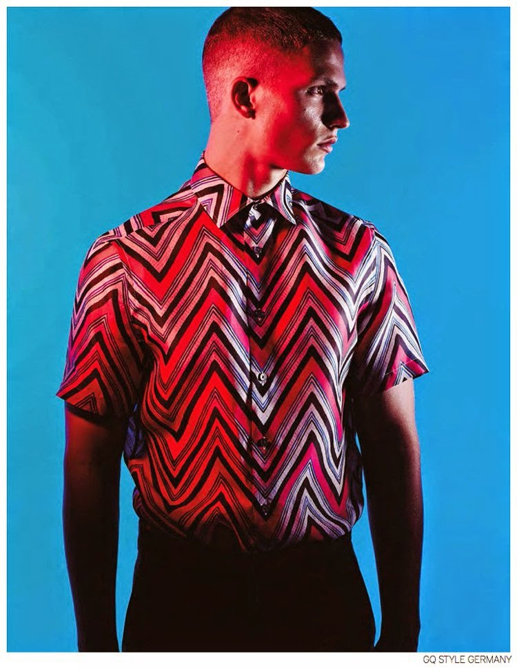 Spring 2015 Preview-Models Nathaniel Visser and Brad Williams hit the studio with fashion photographer Anthony Maule for GQ Style Germany’s fall/winter 2014 issue. Posing for images featuring an eclectic selection of spring 2015 fashions, Nathaniel and Brad are captured against colorful backgrounds that reflect the playful spirit of the upcoming season. From Dior Homme to Givenchy, experimental prints and treatments are in play for spring. / Styling by Tobias Frericks. Courtesy of – thefashionisto.com